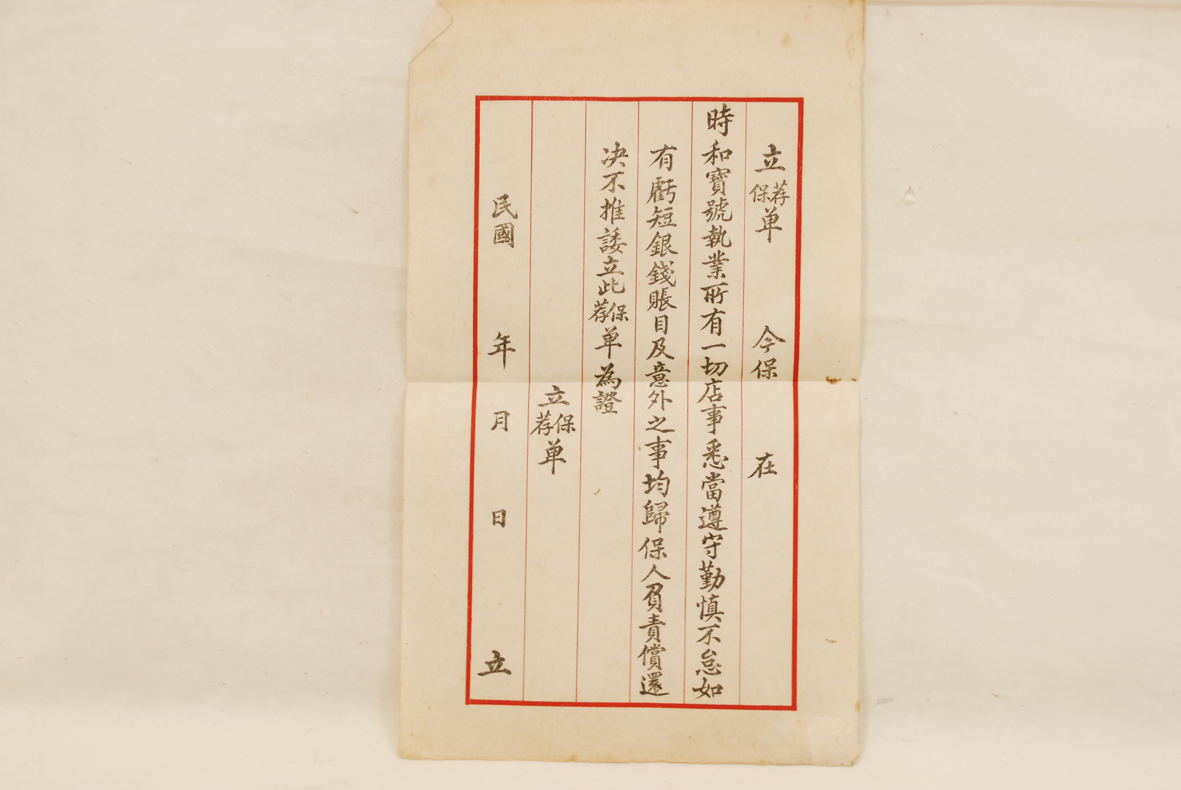 民国空白保荐单