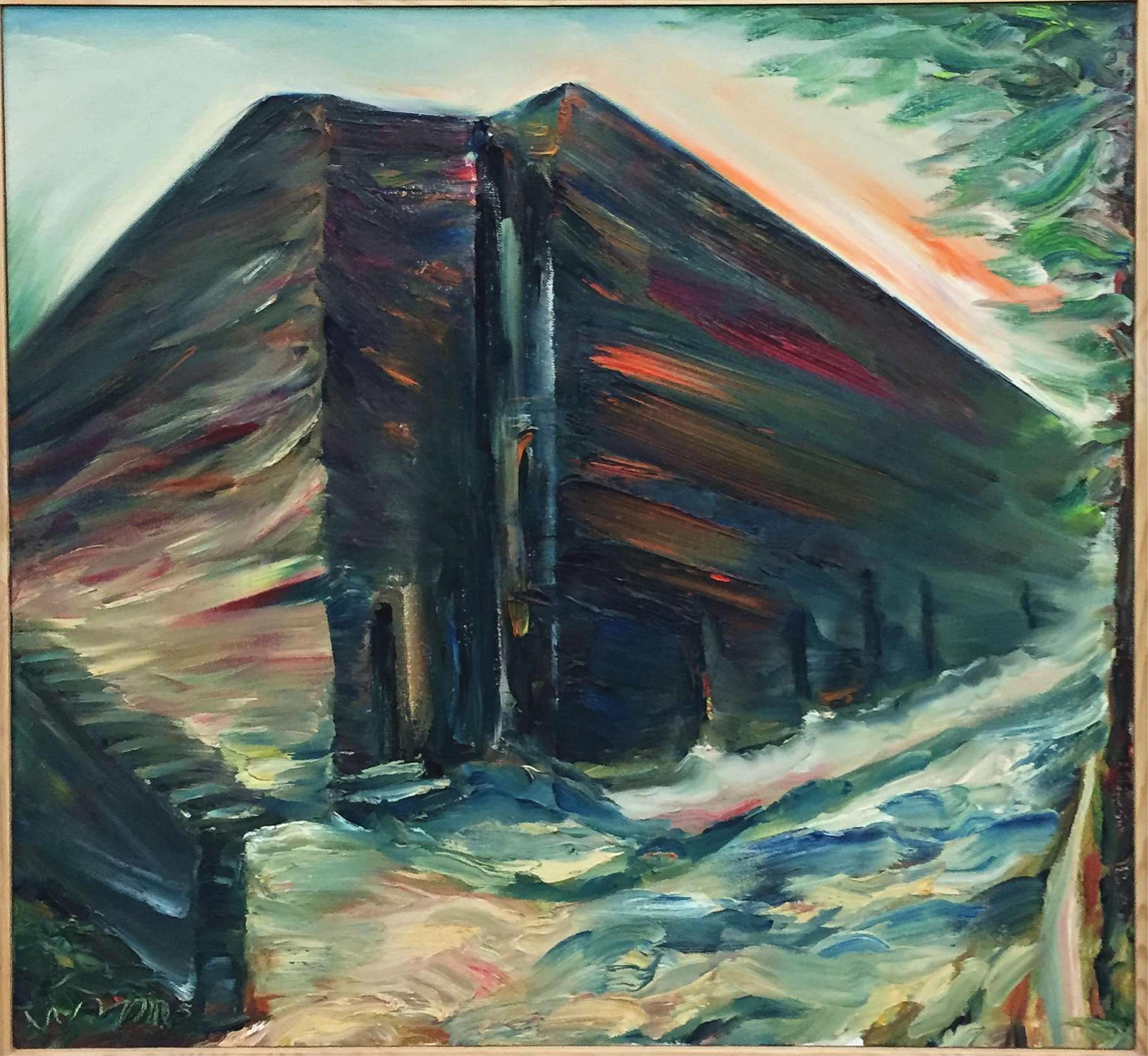 现代王默油彩故宫残壁镜框