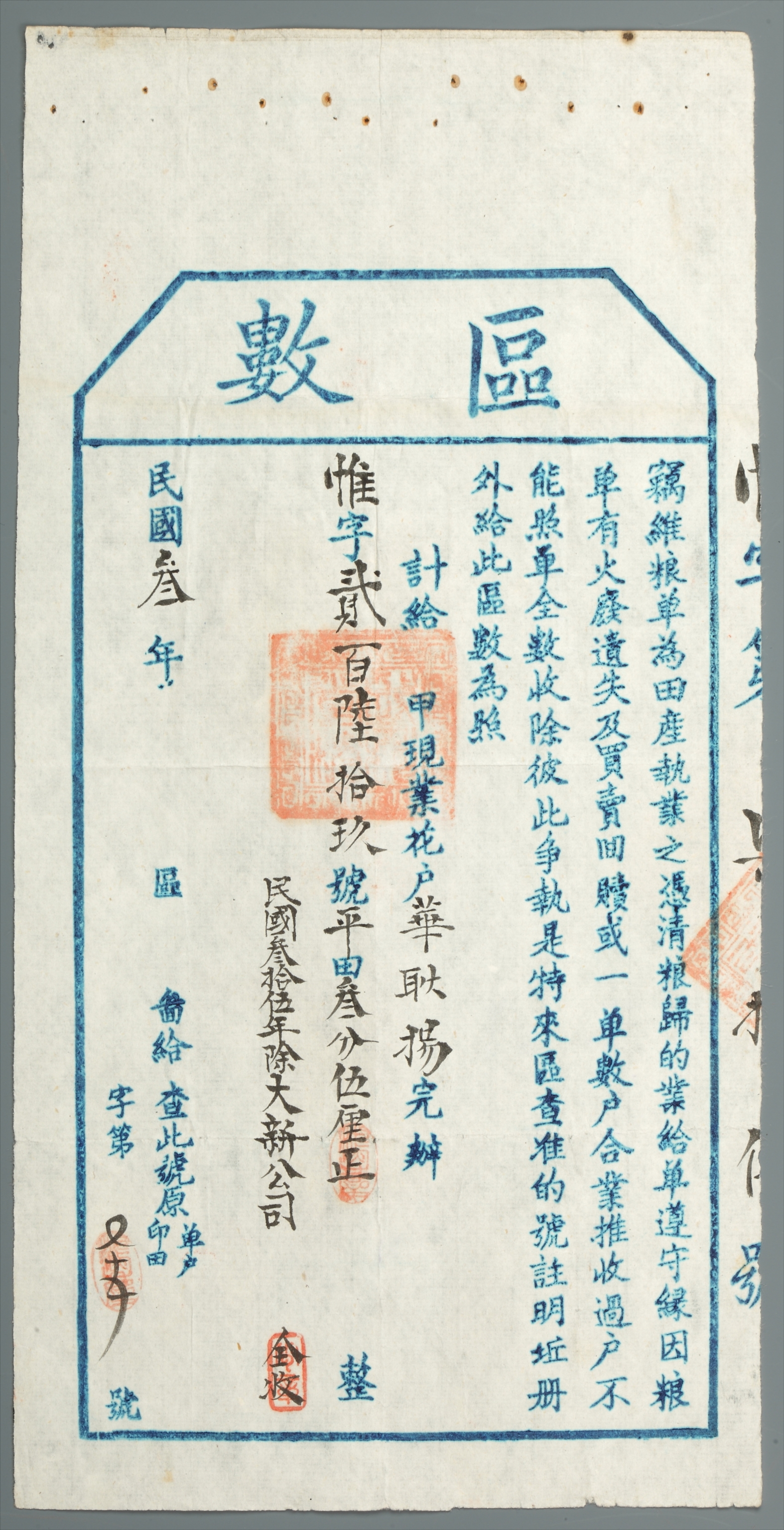 1946年“区数”田产执业凭据