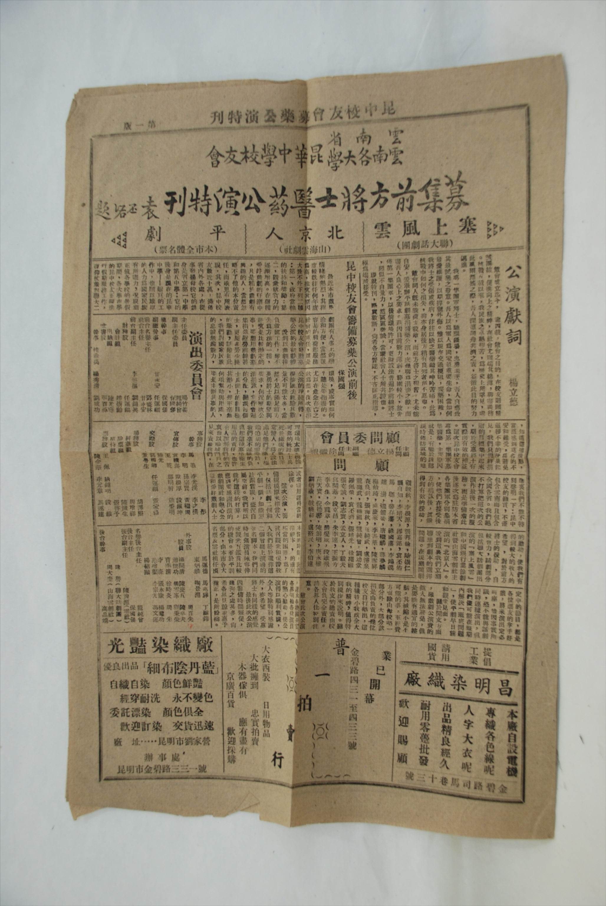 民国《昆中校友会募药公演特刊》