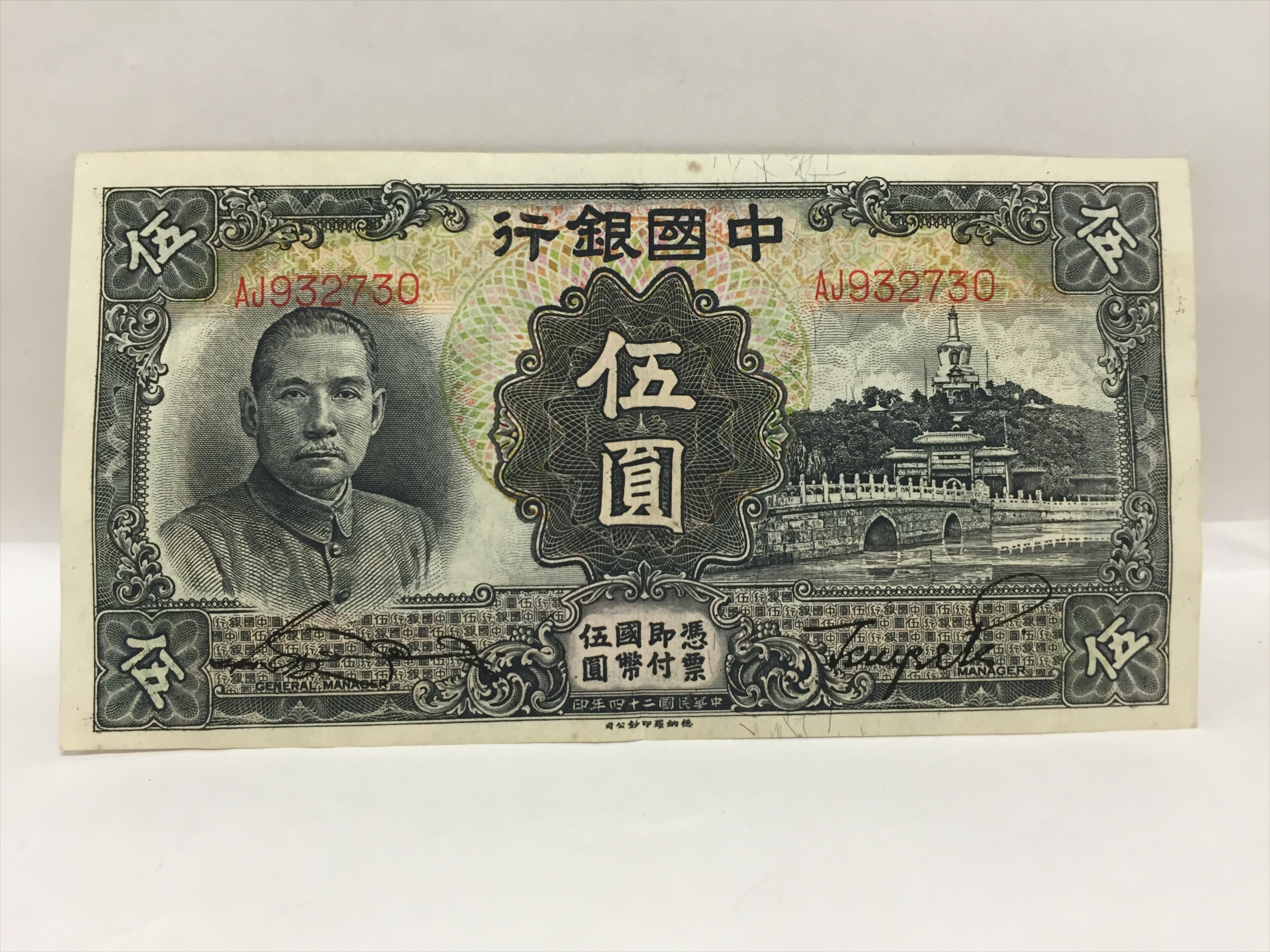民国二十四年中国银行伍圆纸币