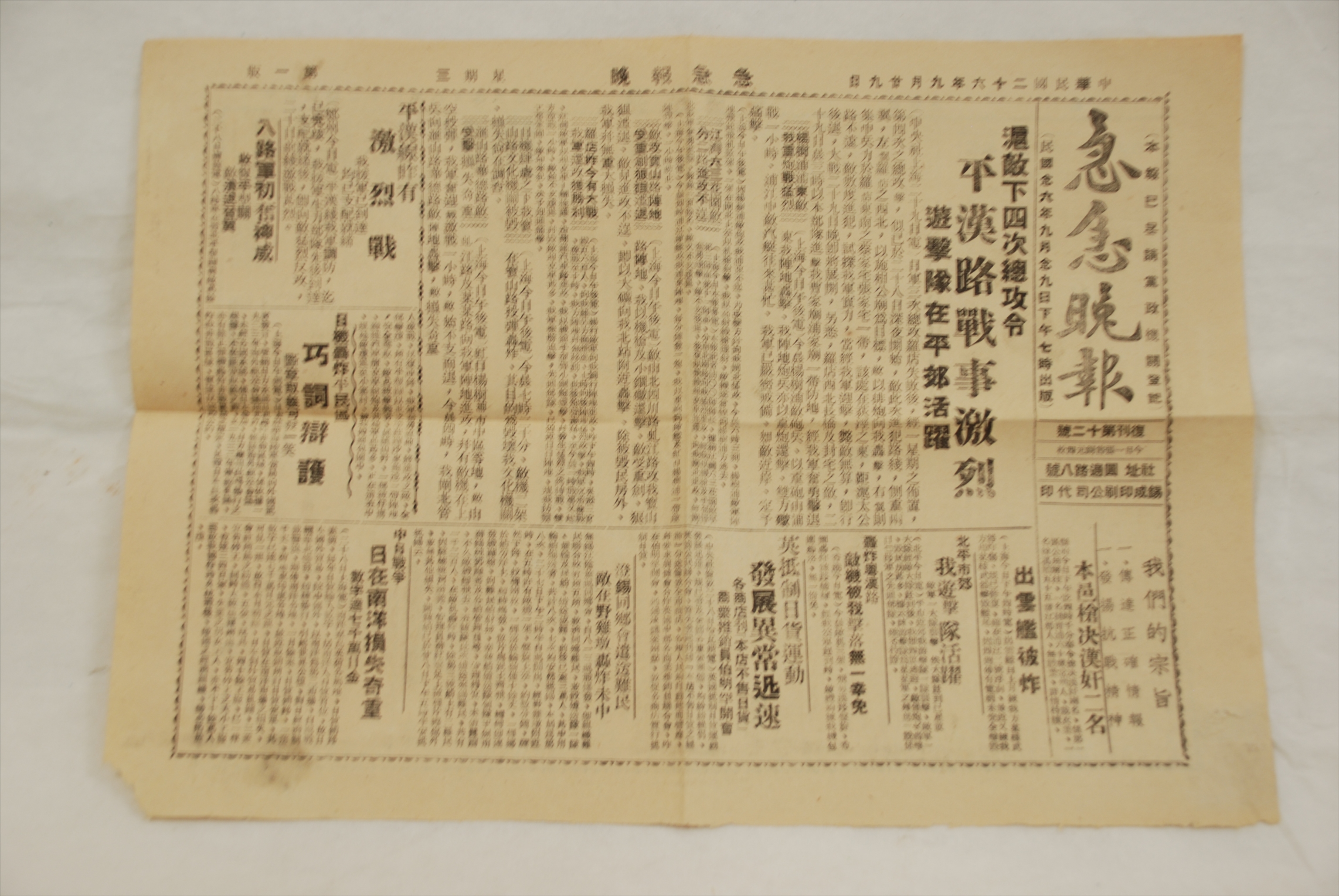 1937年9月29日《急急晚报》