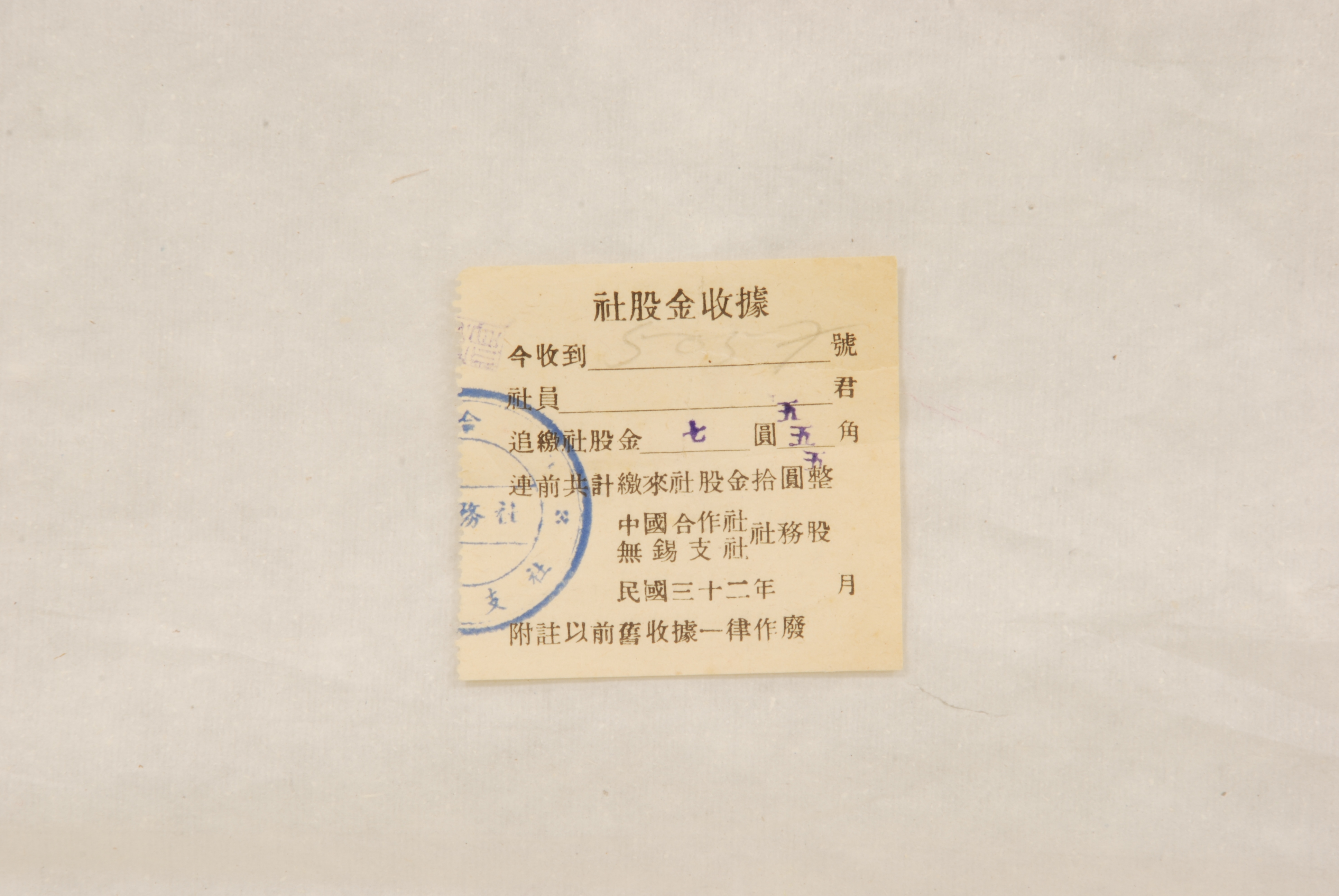 1943年中国合作社无锡支社社务股出具的社股金收据