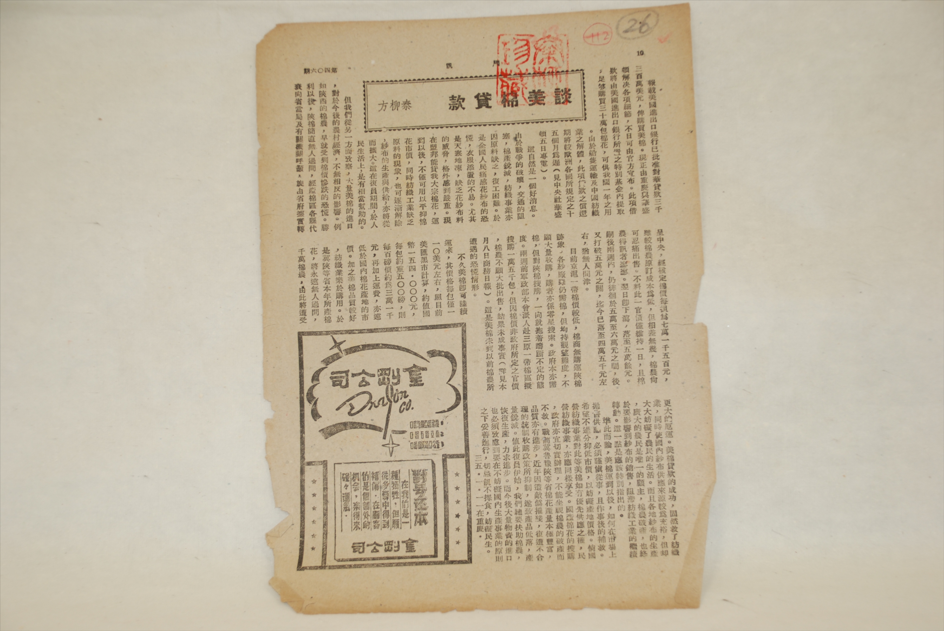 1946年11月11日秦柳方发表的《谈美棉贷款》