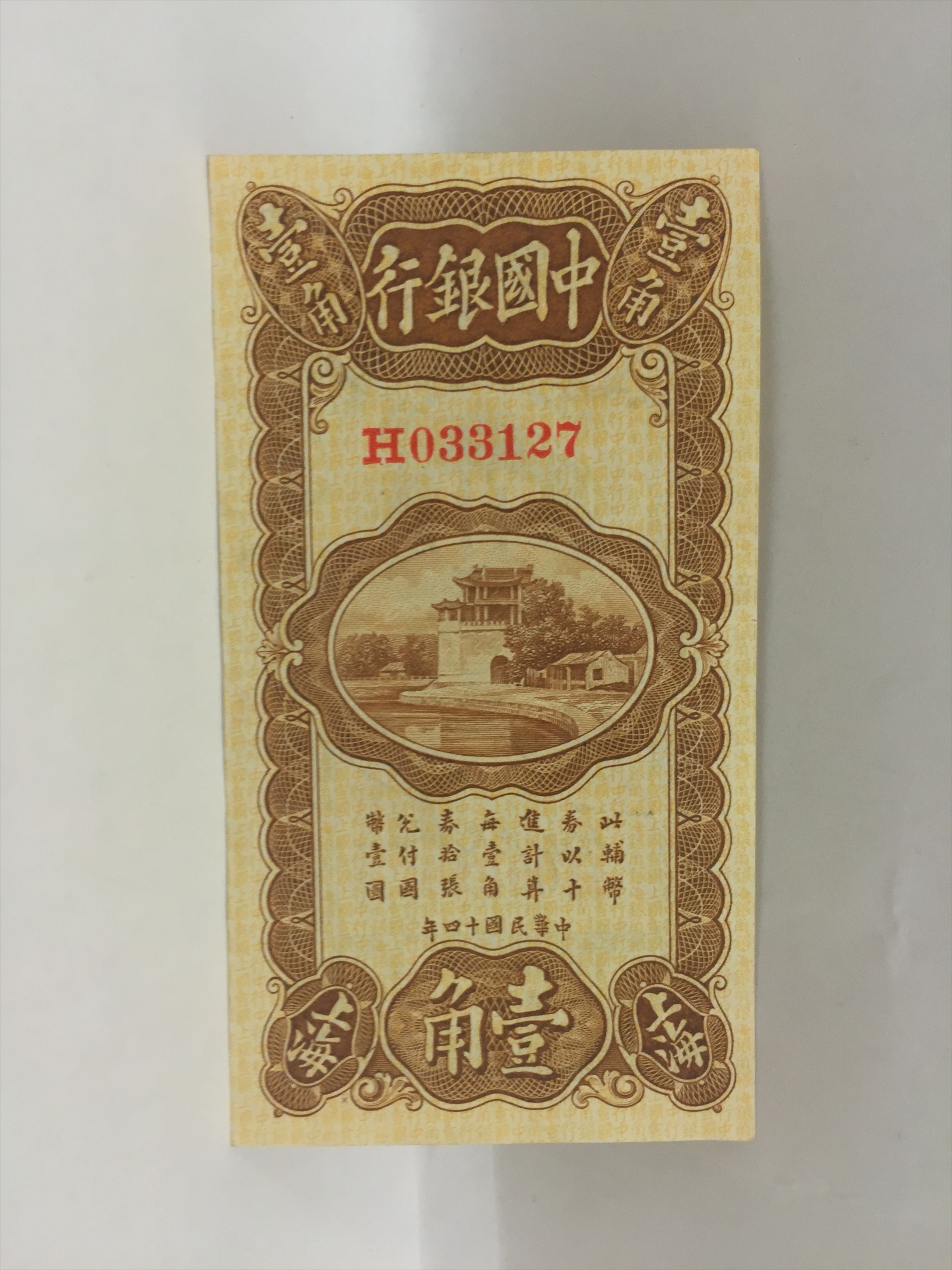 民国十四年中国银行壹角纸币
