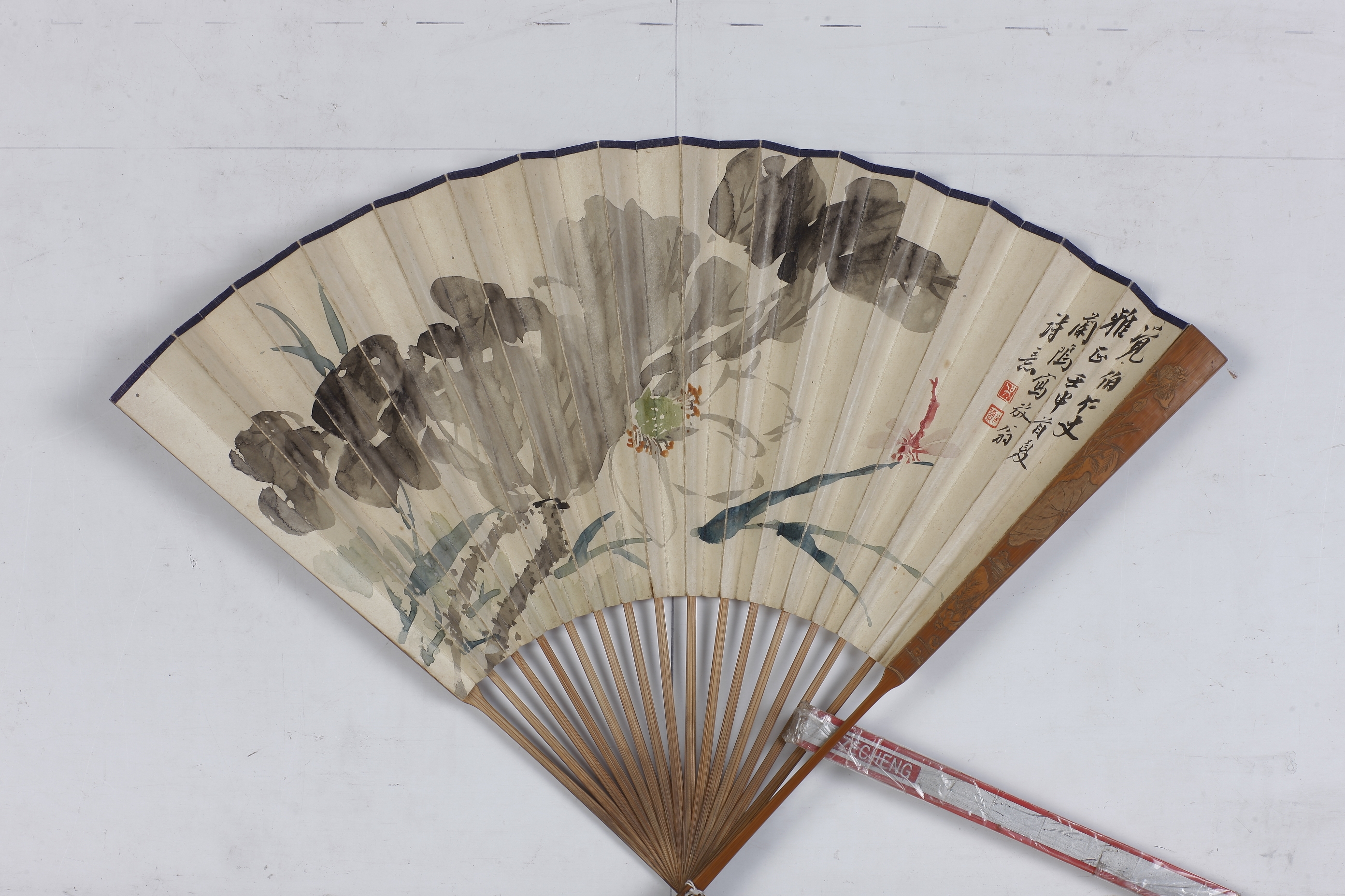 近代吴似兰放翁诗意图、朱梁仁篆书成扇
