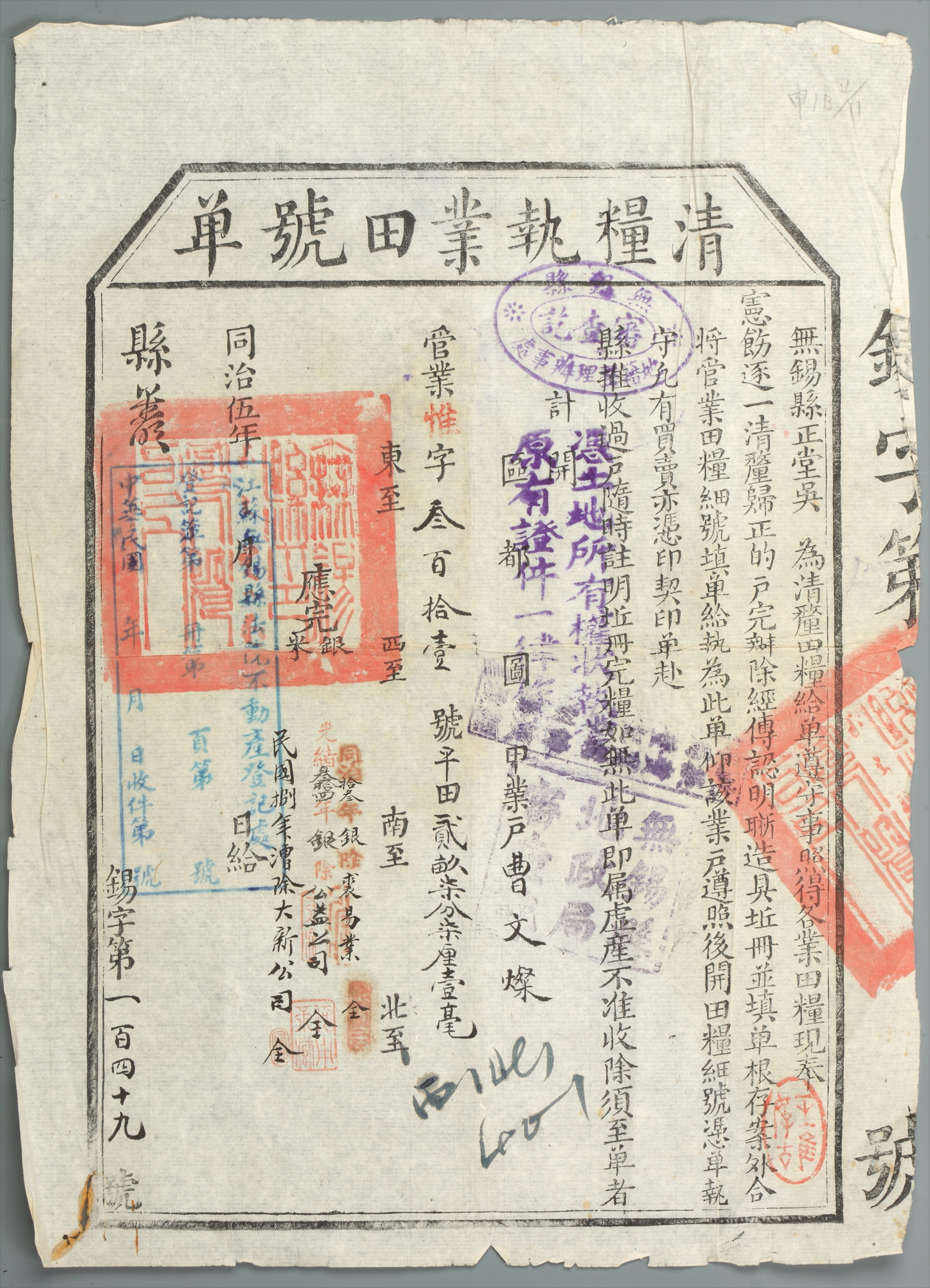 1919年清粮执业田号单
