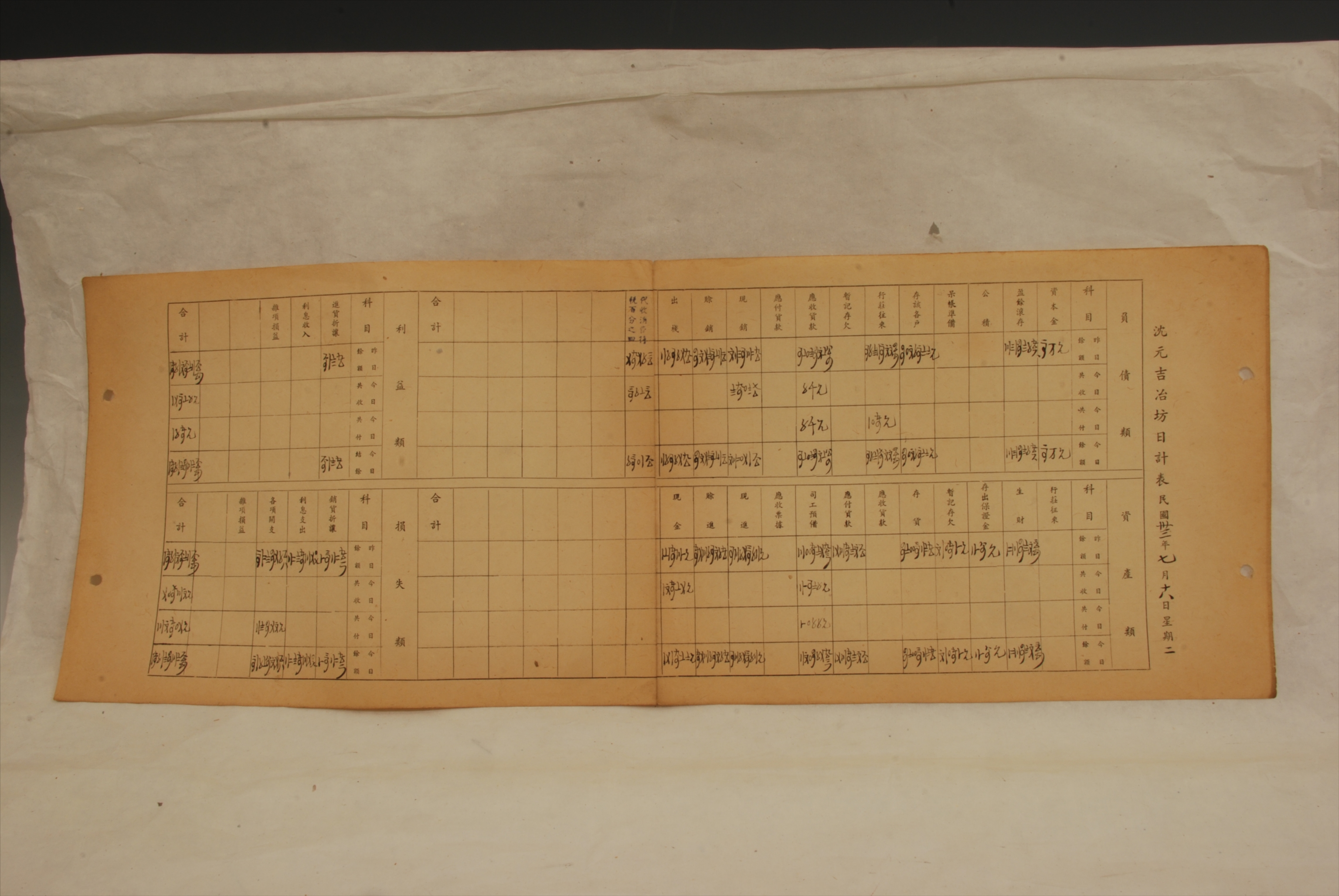 1944年7月18日沈元吉冶坊日计表