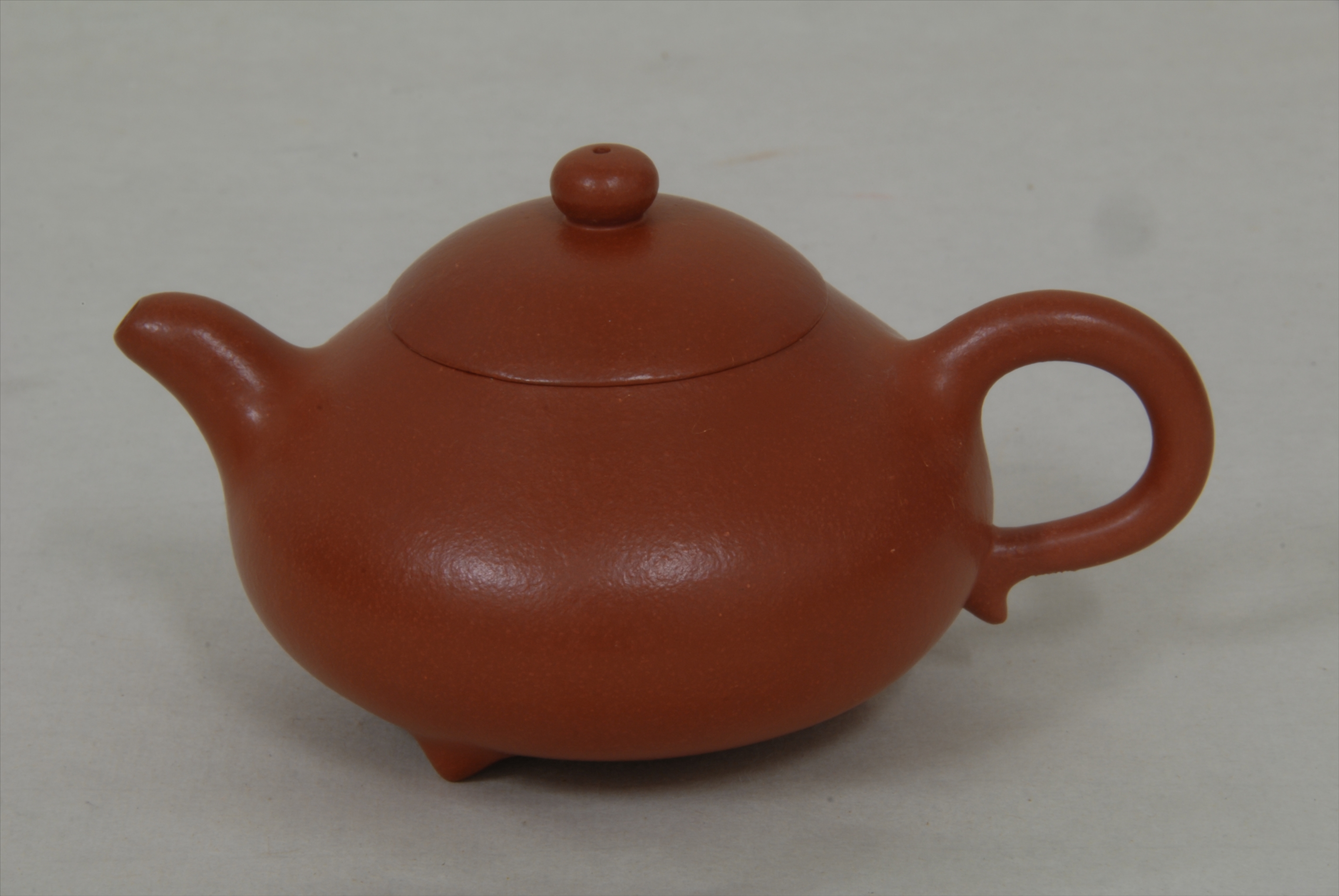 现代张飘萍制紫砂朱泥三脚玉乳壶