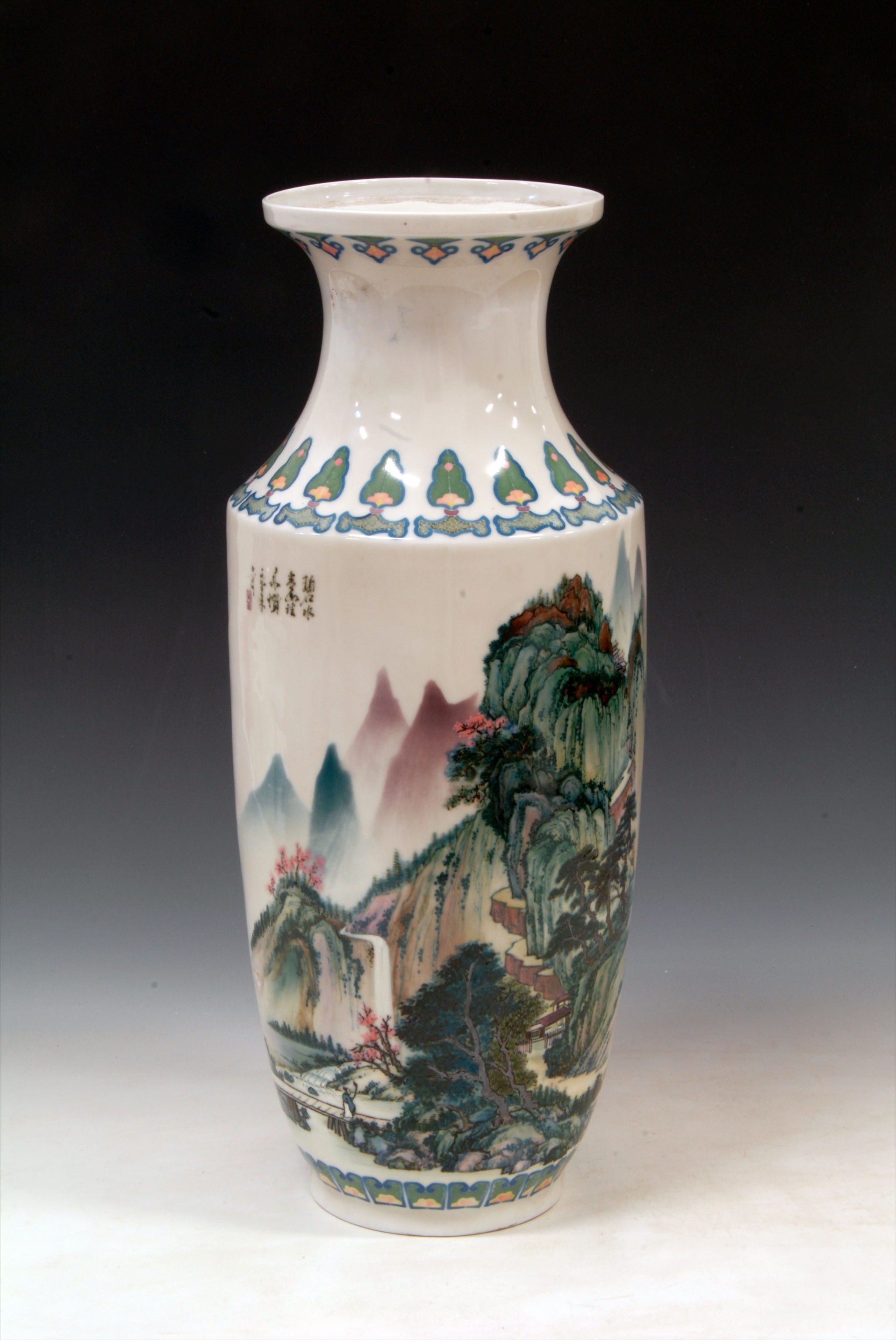 现代“中国江阴”款五彩山水纹瓷瓶