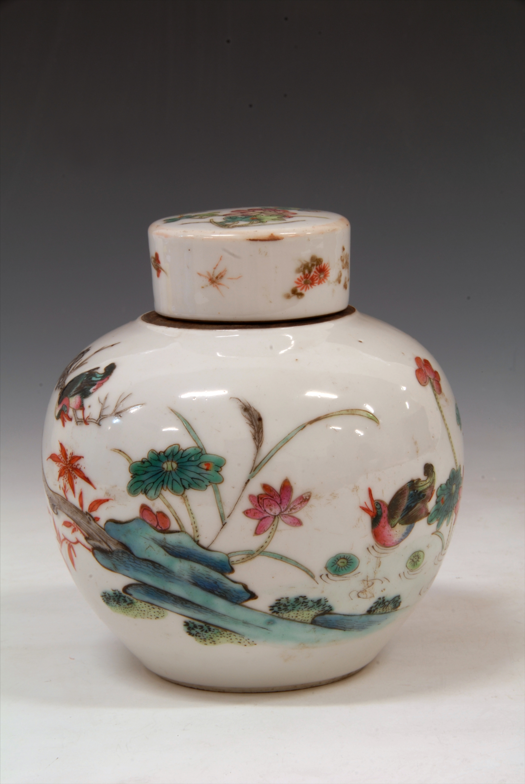 清粉彩鸳鸯莲塘纹瓷盖罐