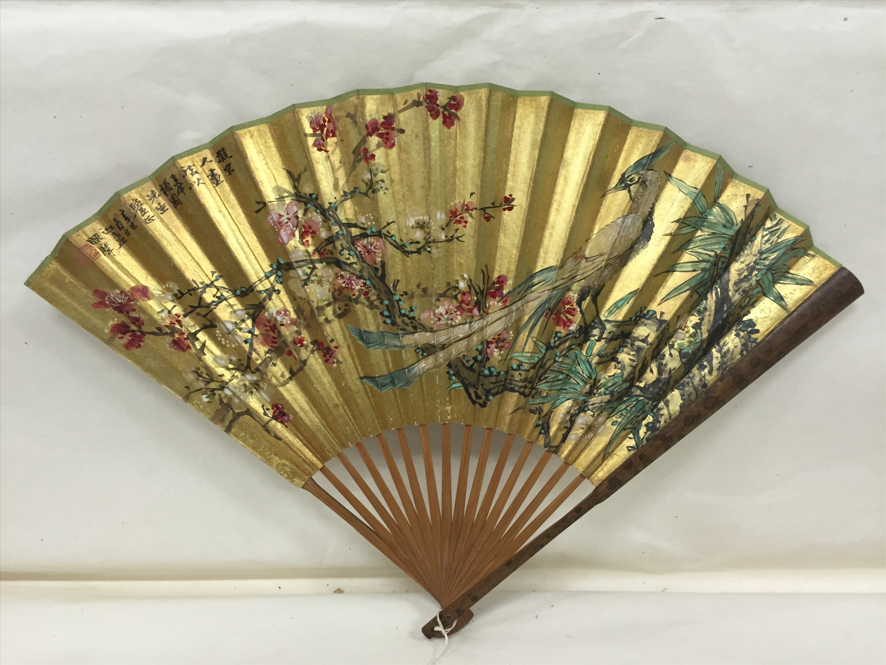 近代吴观涛山水图、陈摩花鸟图成扇