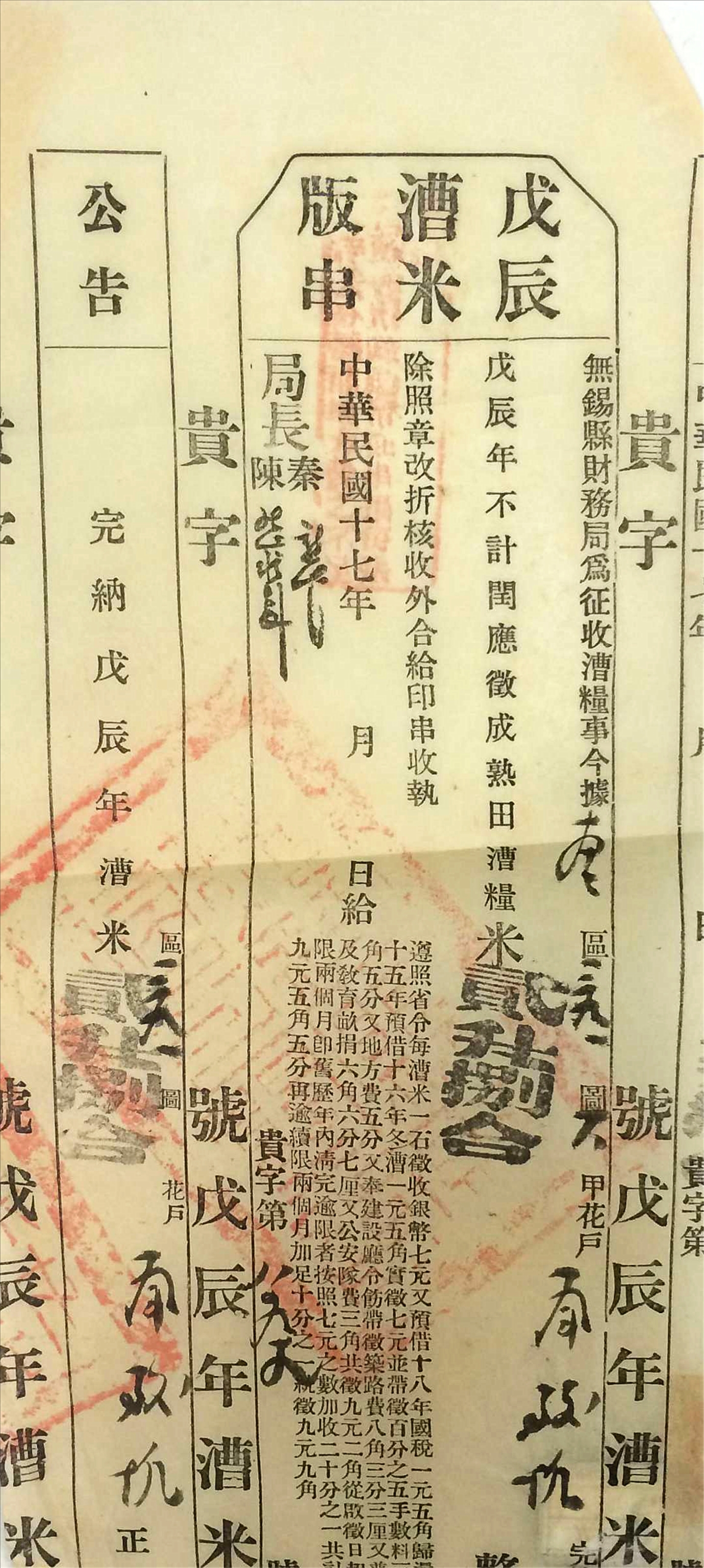 1928年无锡县财务局戊辰漕米版串