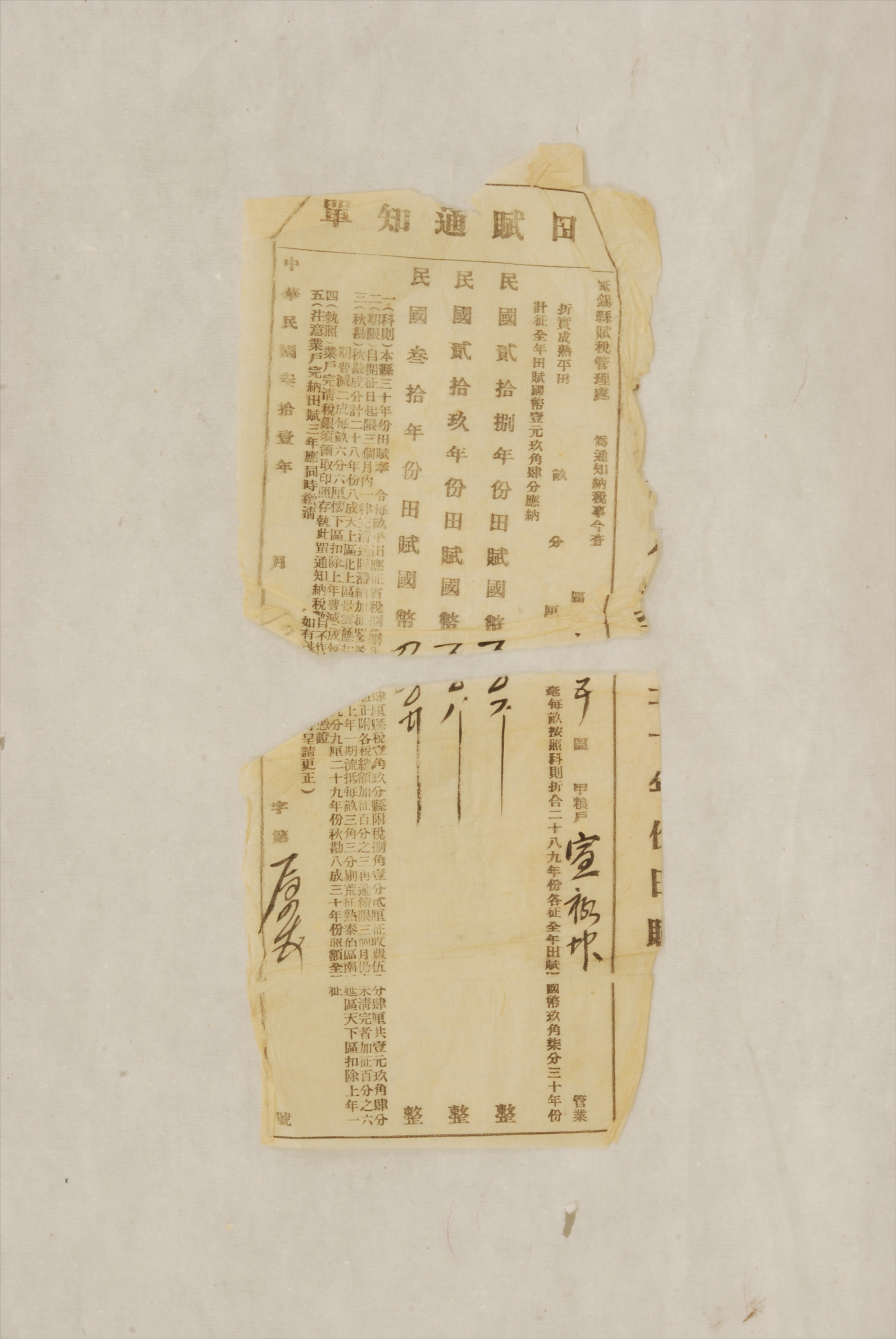 1942年无锡县赋税管理处颁发给宣禄坤的田赋通知单