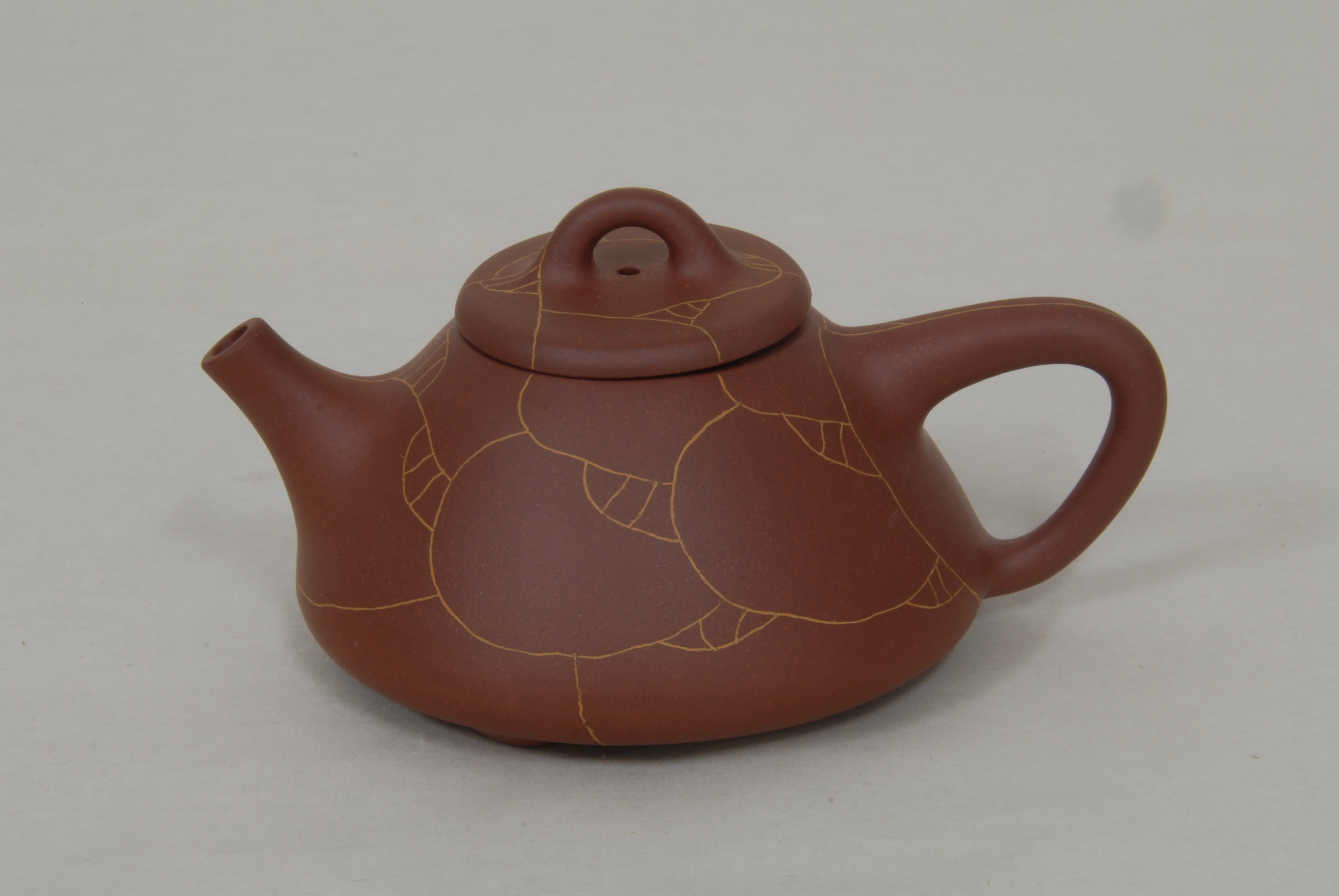 现代姚华君制紫砂冰纹石瓢壶