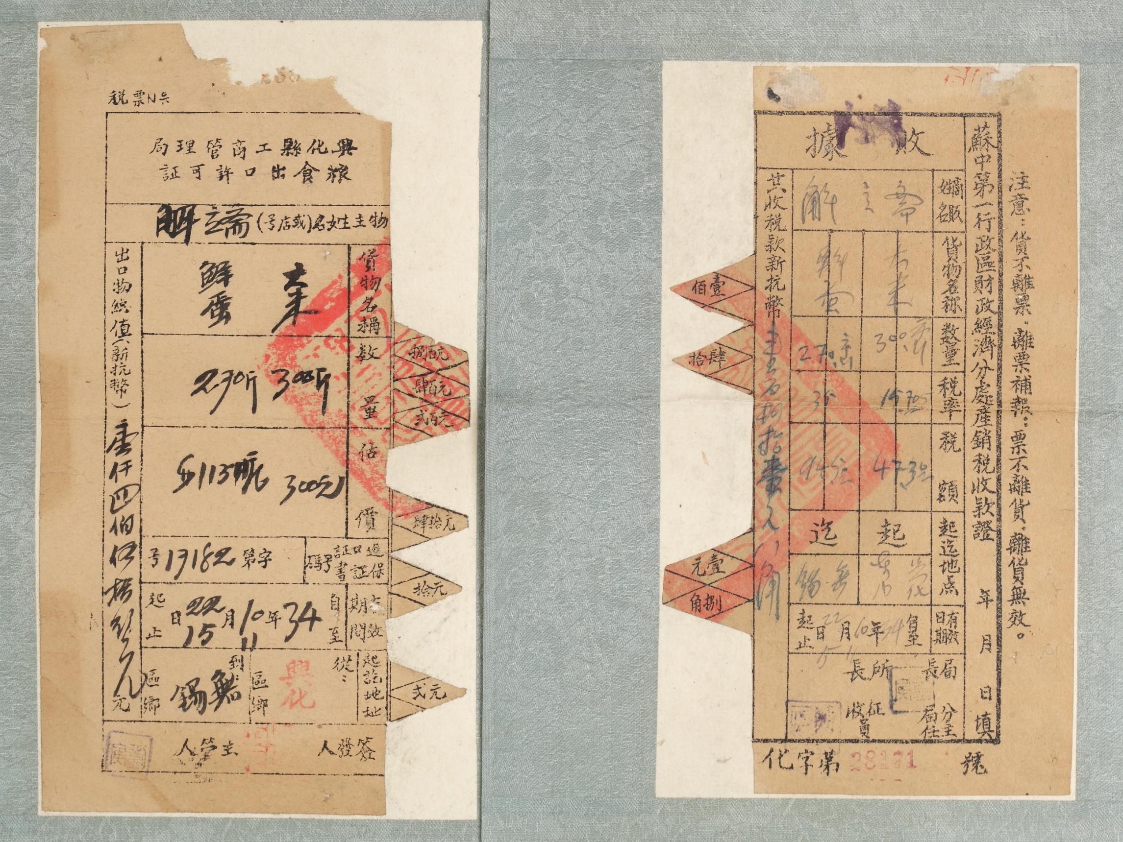1945年苏中第一行政区财政经济分处产销税收款证