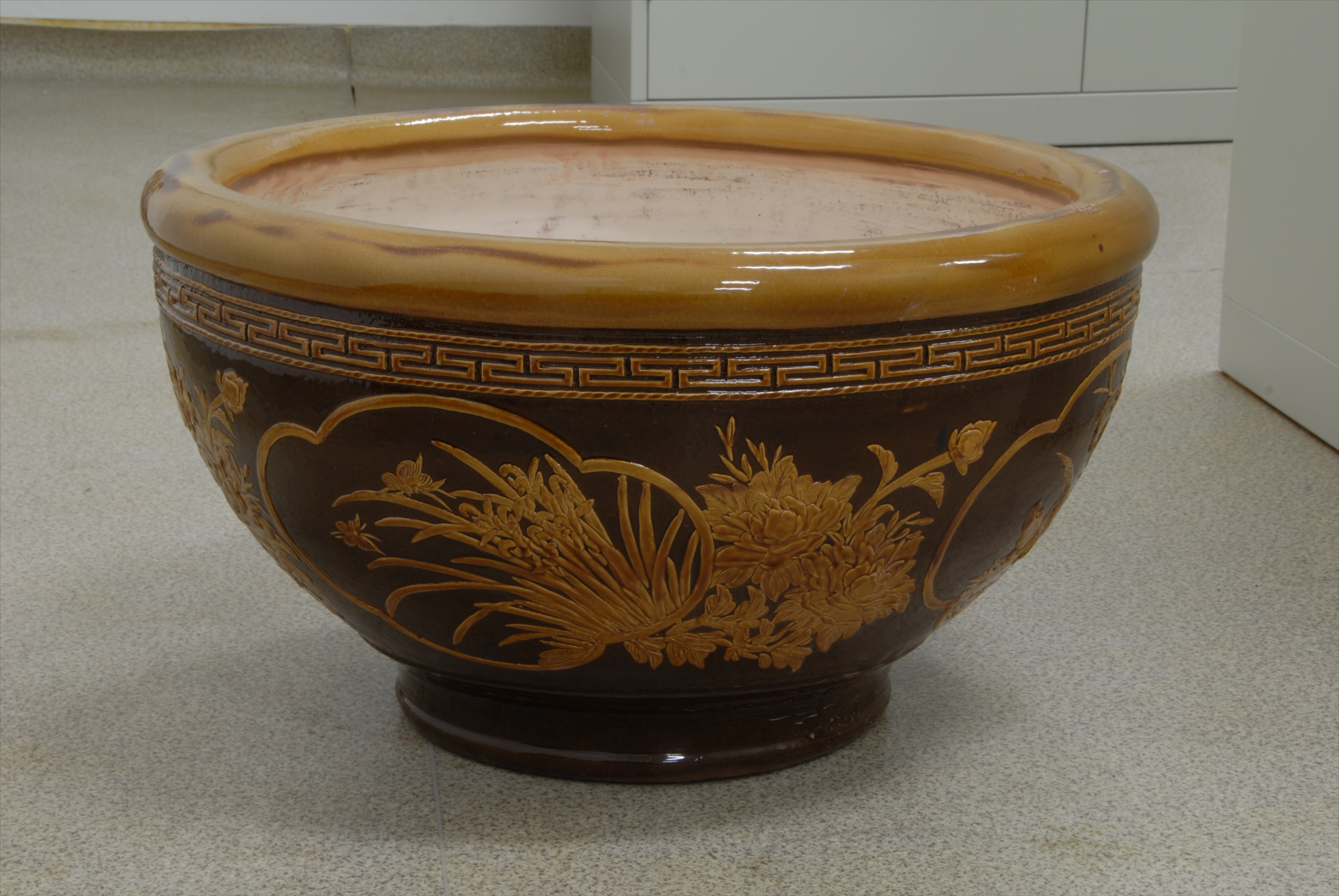 现代花卉纹釉陶缸