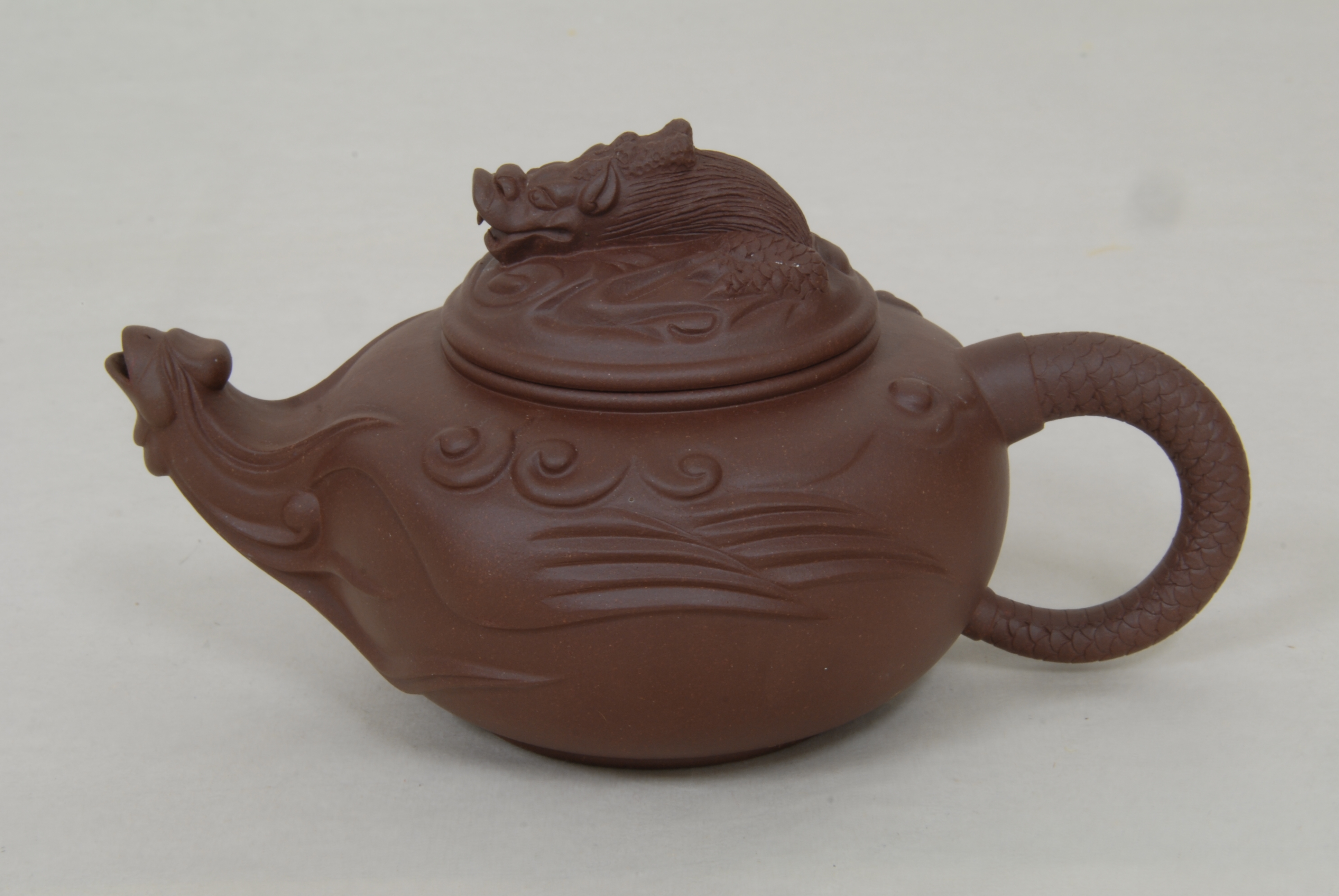 现代蒋菊芳制紫砂龙凤呈祥壶