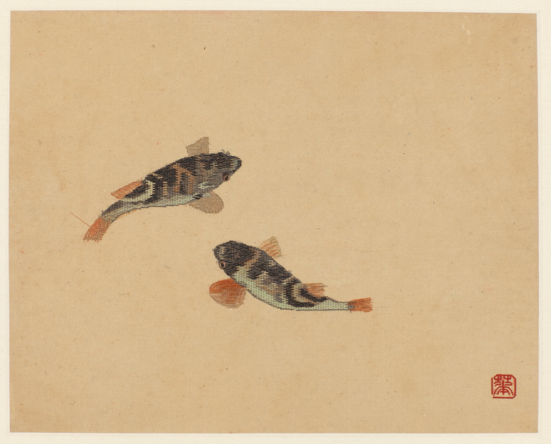 现代华慧贞锡绣《鱼乐图》镜片