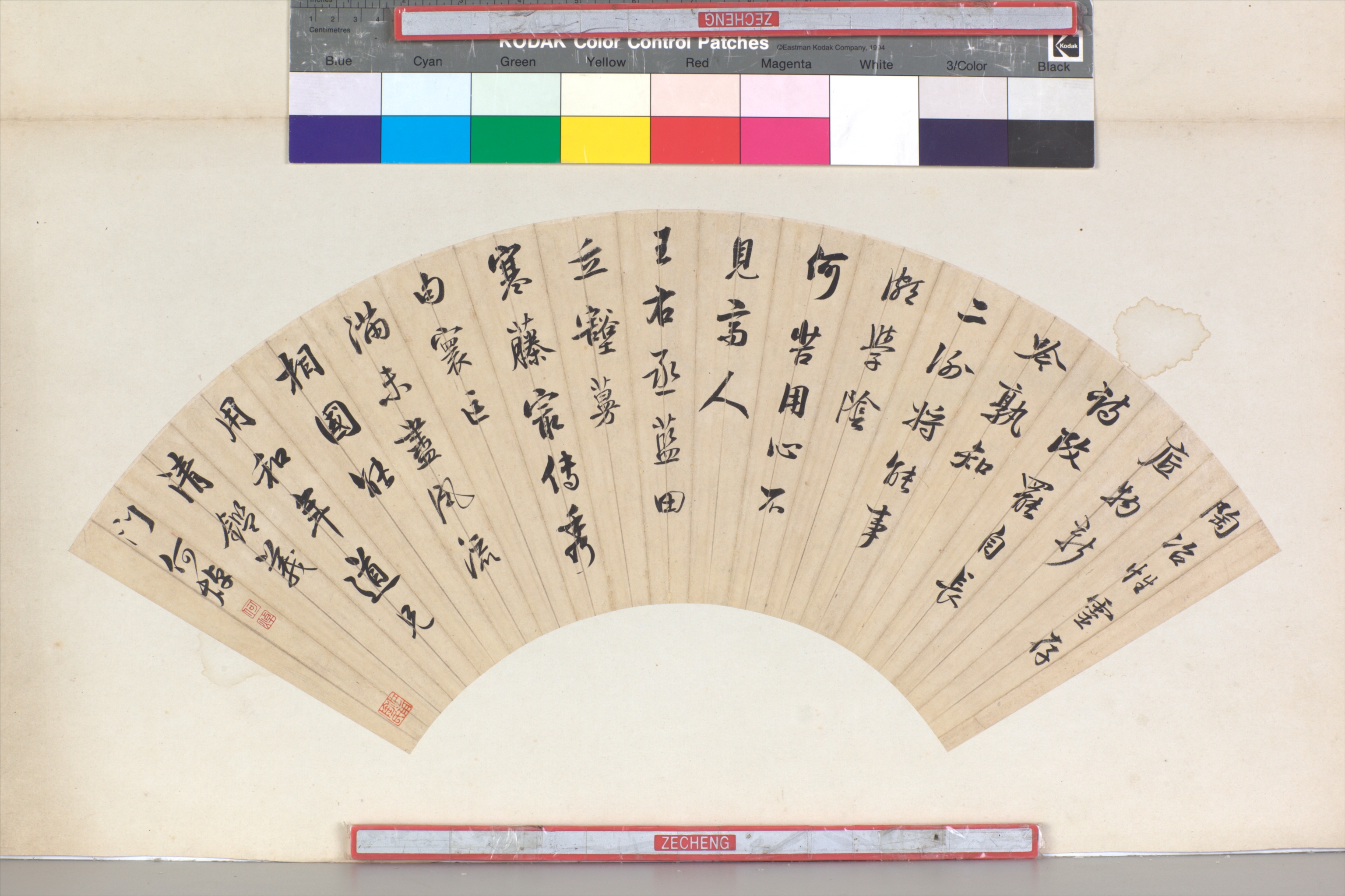 清何焯行书七律诗扇面