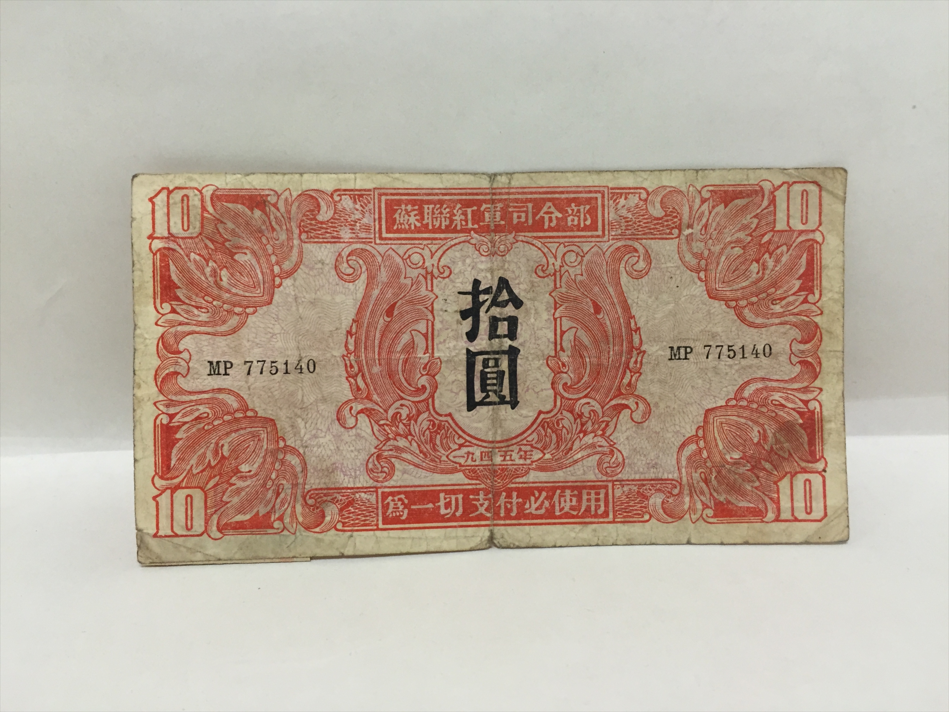 民国三十四年苏联红军司令部拾圆纸币