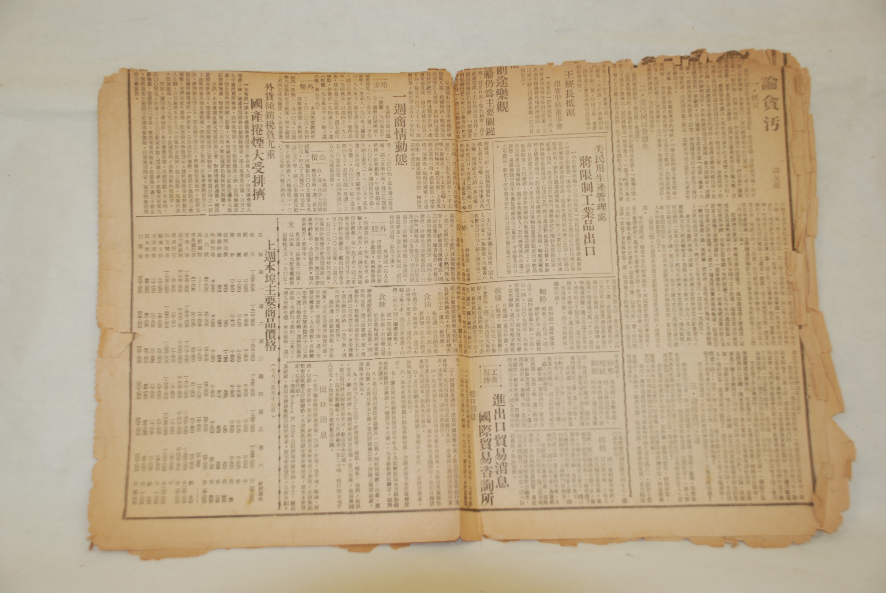 1946年7月15日秦柳方与秦进合编的《文汇报》经济版面