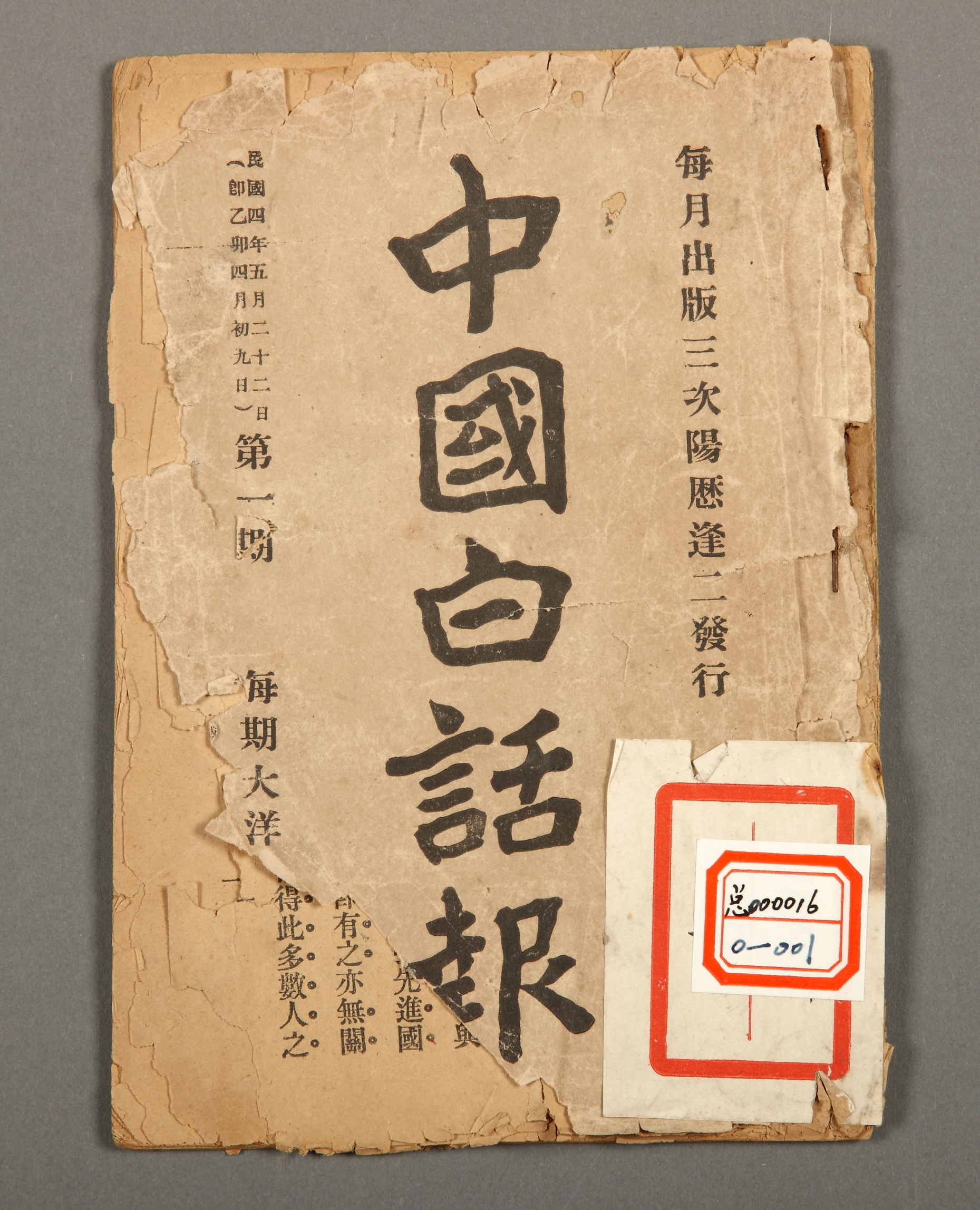 1915年5月22日《中国白话报》第一期