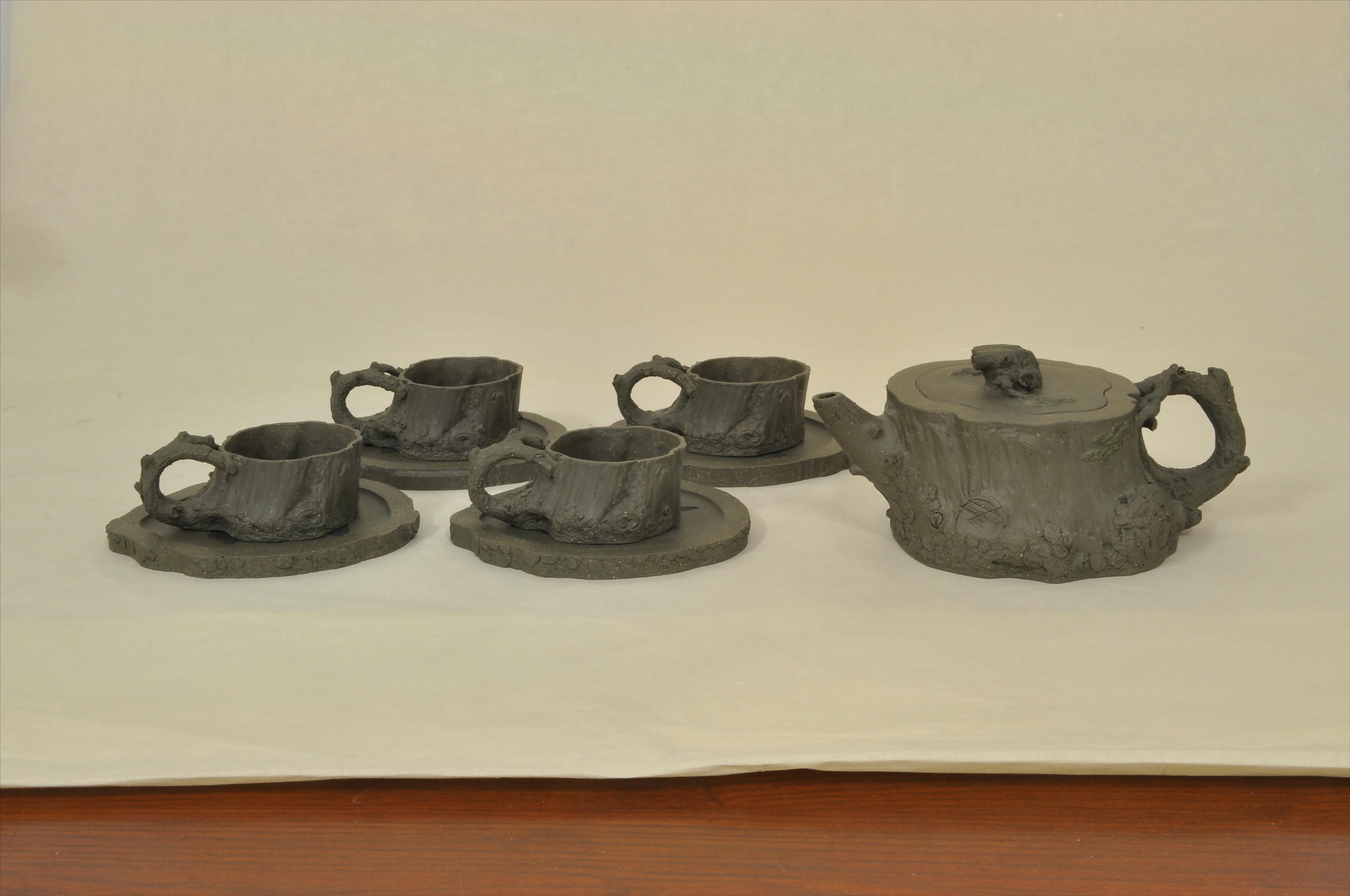 现代范建军、费寅媛合制紫砂九头凌风劲节茶具
