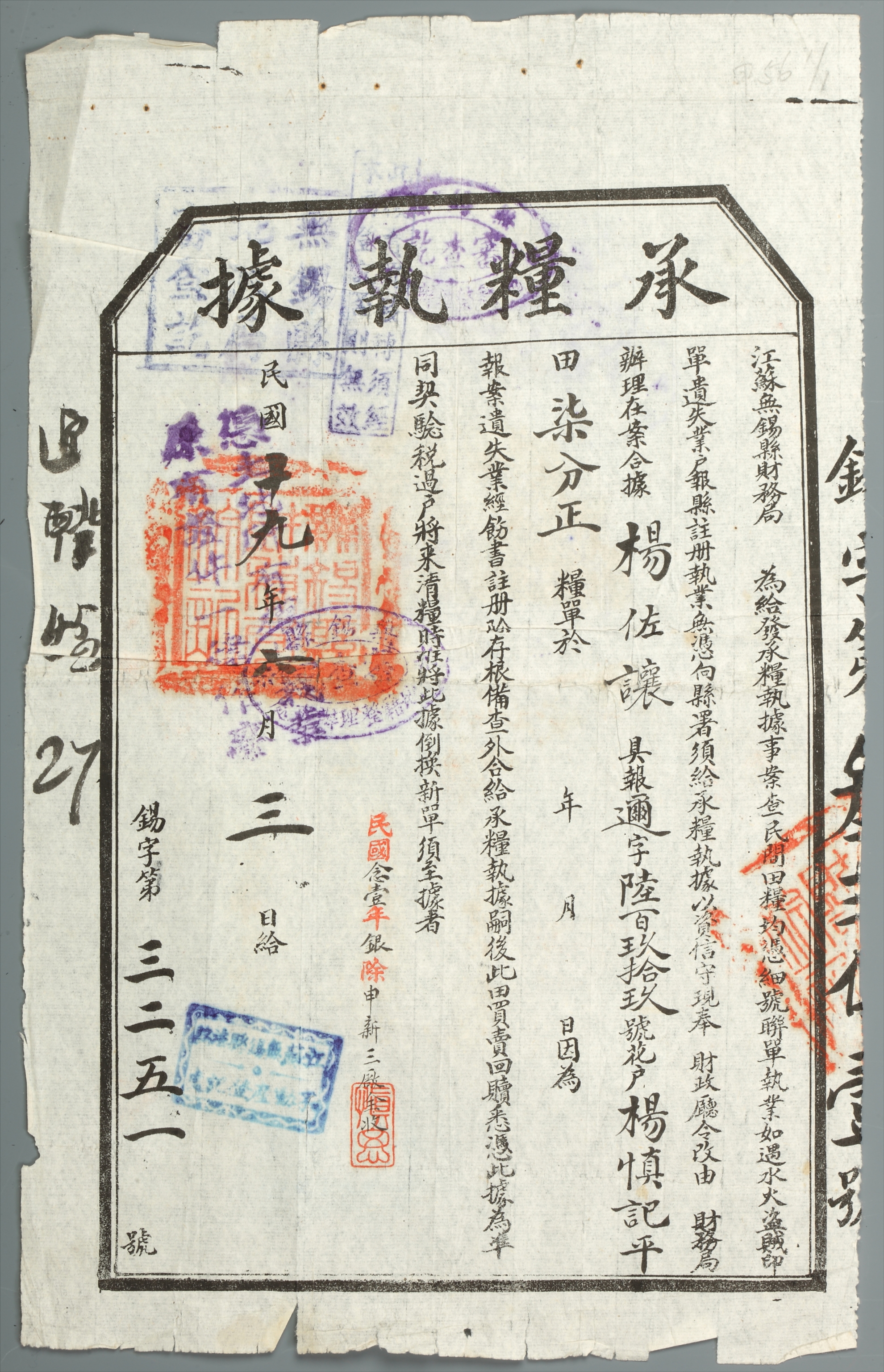 1932年承粮执据