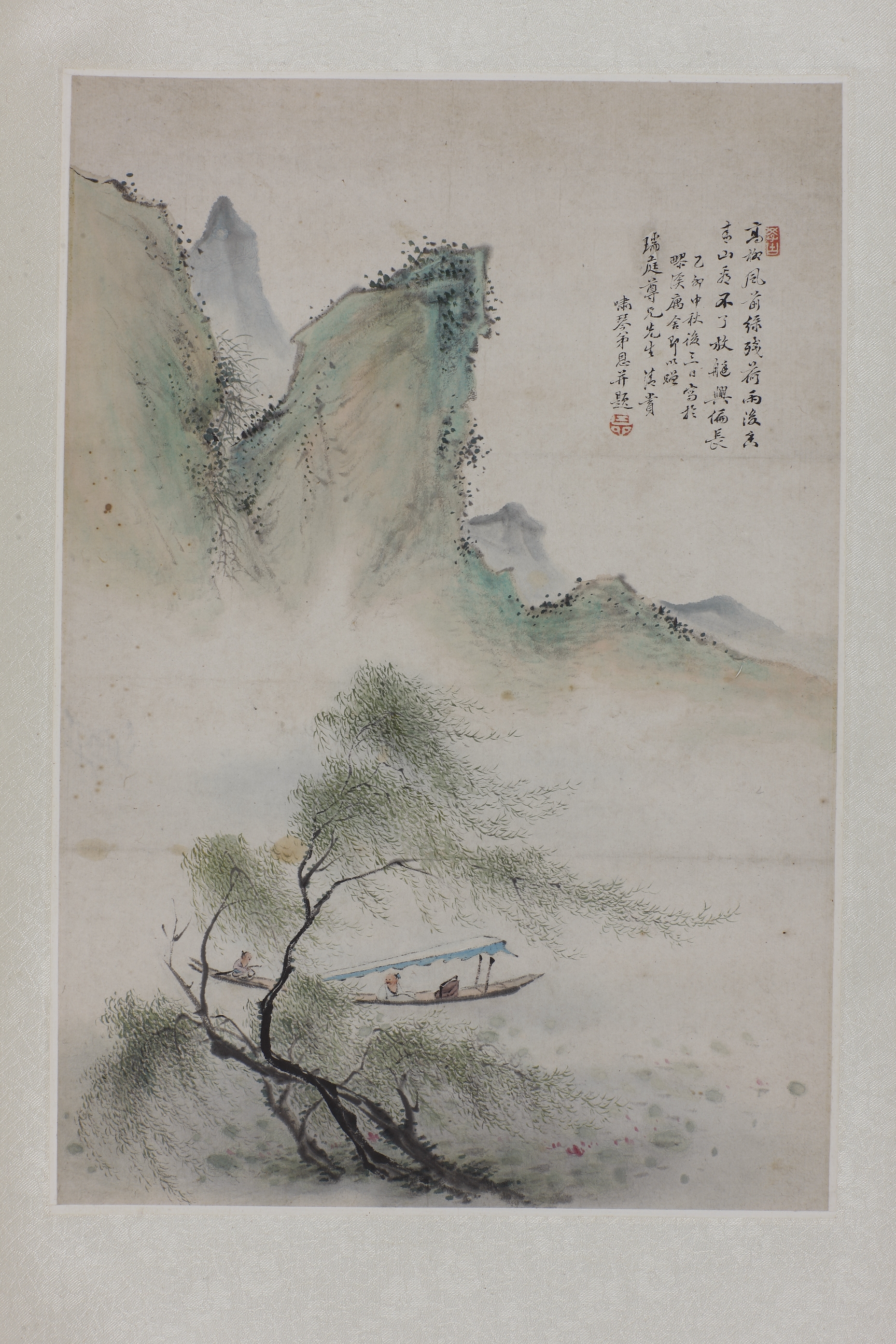 近代啸琴放艇图轴
