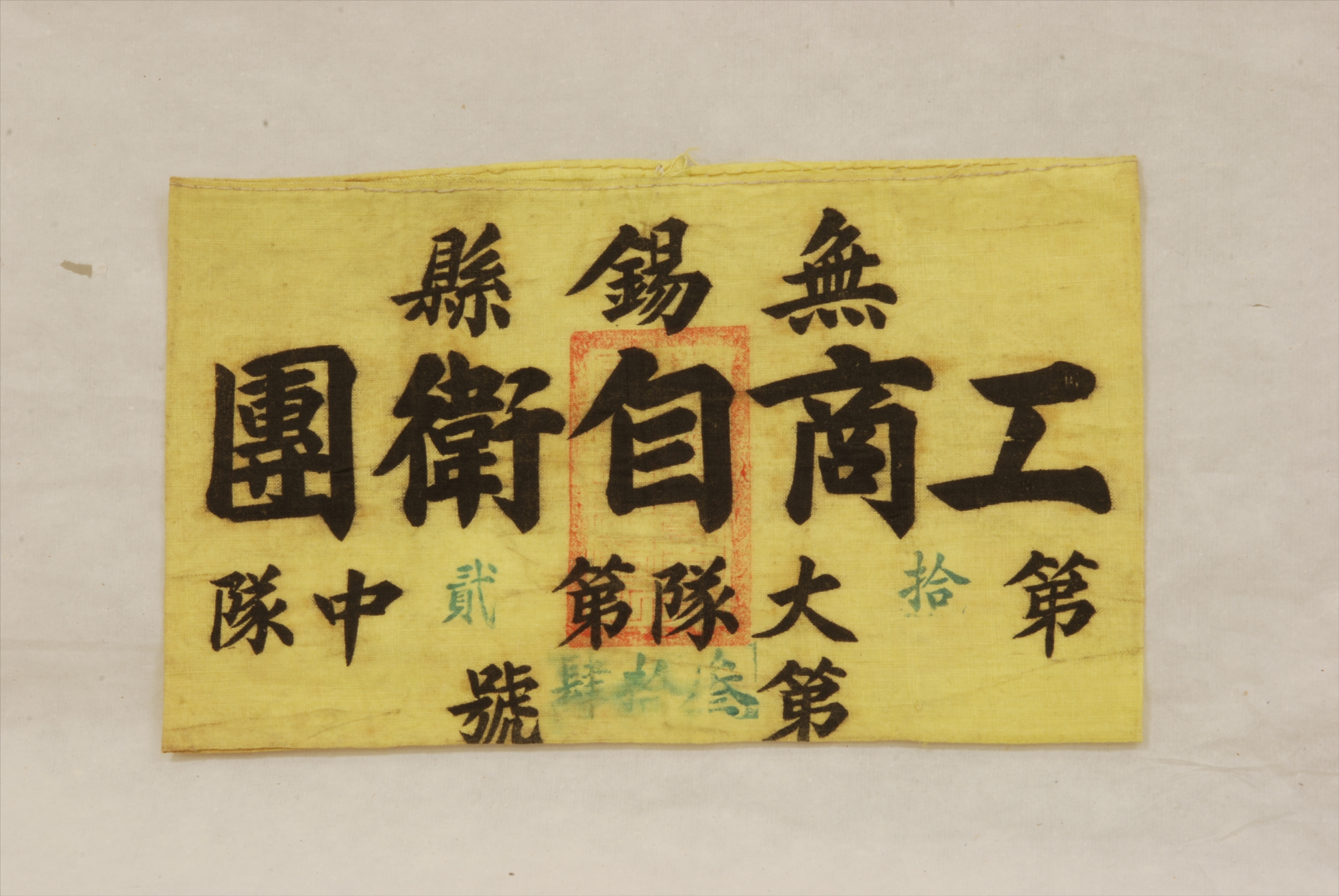 民国无锡县工商自卫团第拾大队第贰中队第叁拾肆号臂章