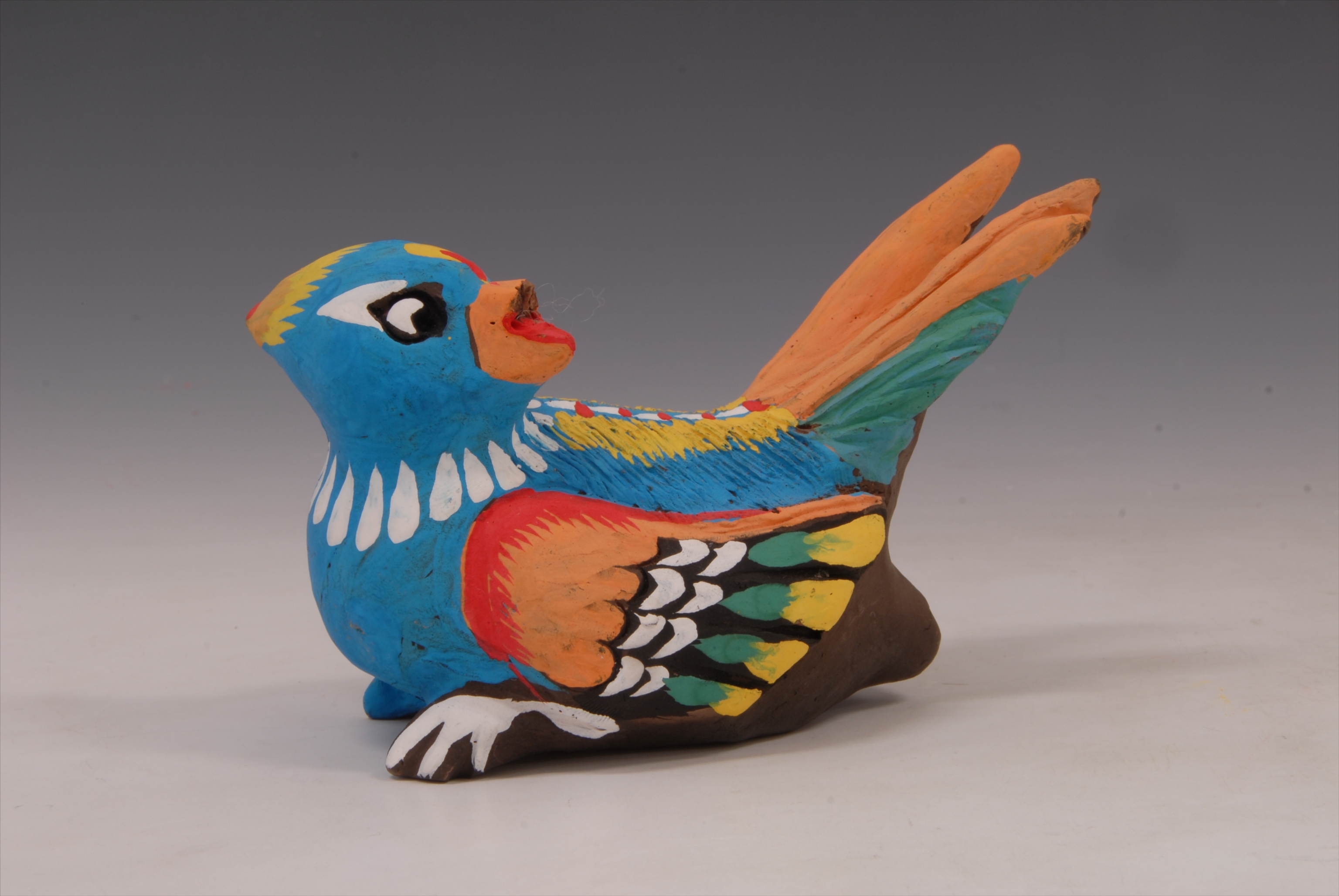 现代王蓝田作彩绘泥塑鸟