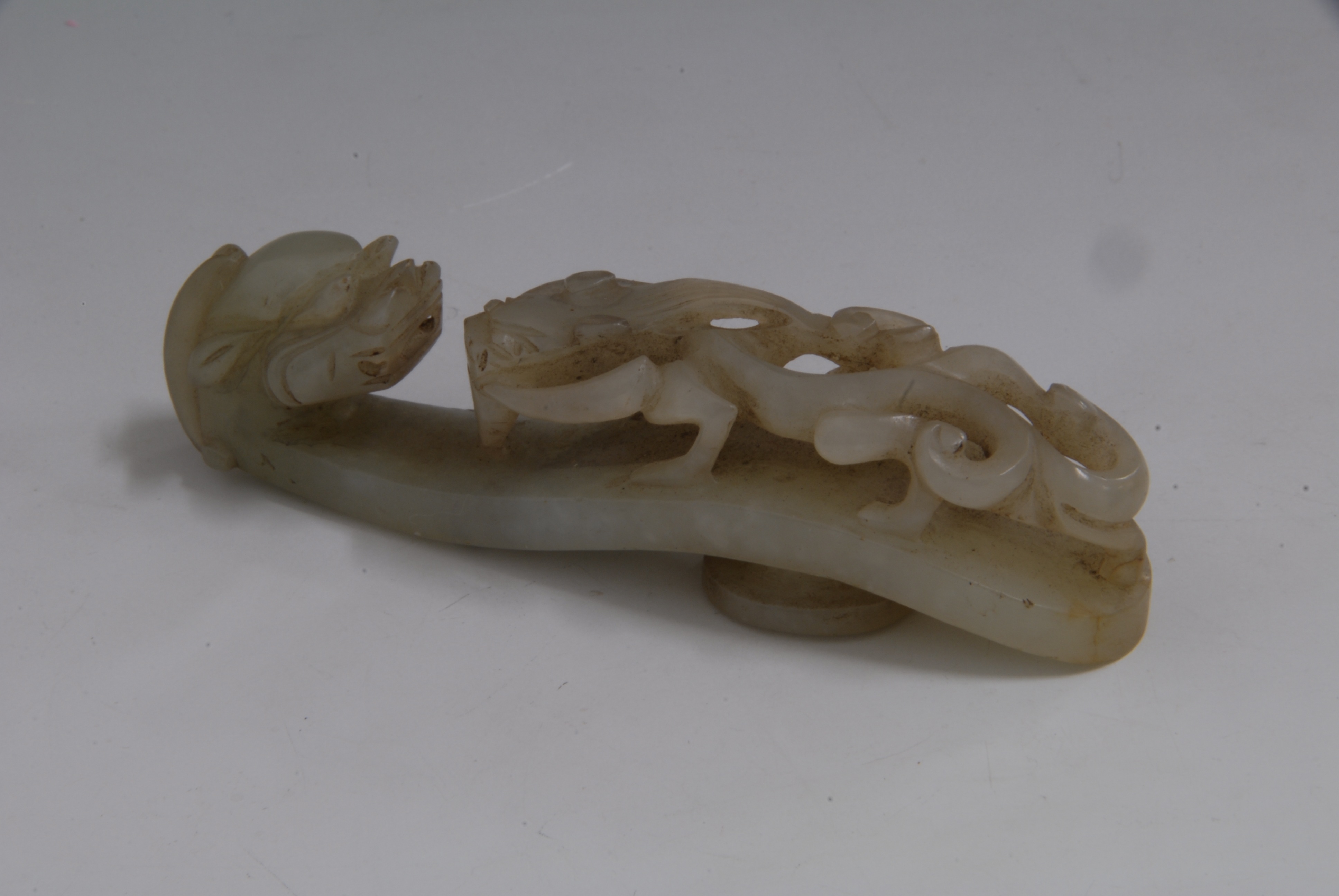 明镂雕蟠螭纹青白玉带钩
