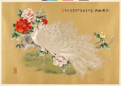 现代丁宛玉锡绣《孔雀牡丹》镜片