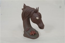 现代薛岳制“骏马送福”紫砂雕塑