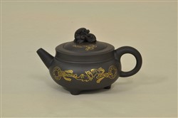 现代朱永忠制紫砂嵌金丝纳福壶