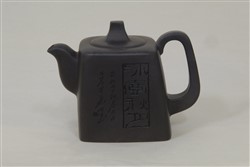 现代宗紫光制紫砂方云石壶