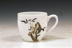 现代“中国醴陵”款竹石纹瓷托杯