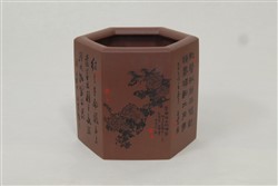 现代范小君制紫砂六方书画笔筒