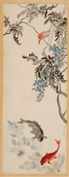 近代杨令茀金鱼翡翠图轴