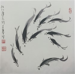 现代黄养辉鱼乐图轴