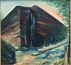 现代王默油彩故宫残壁镜框