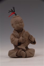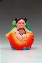现代聂玉中作彩绘泥塑姑娘贺钱串