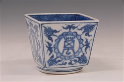 清青花鸟纹方形瓷水盂