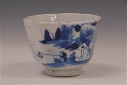 清青花渔樵耕读图八角形瓷杯