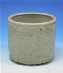 清豆青釉暗花瓷香炉