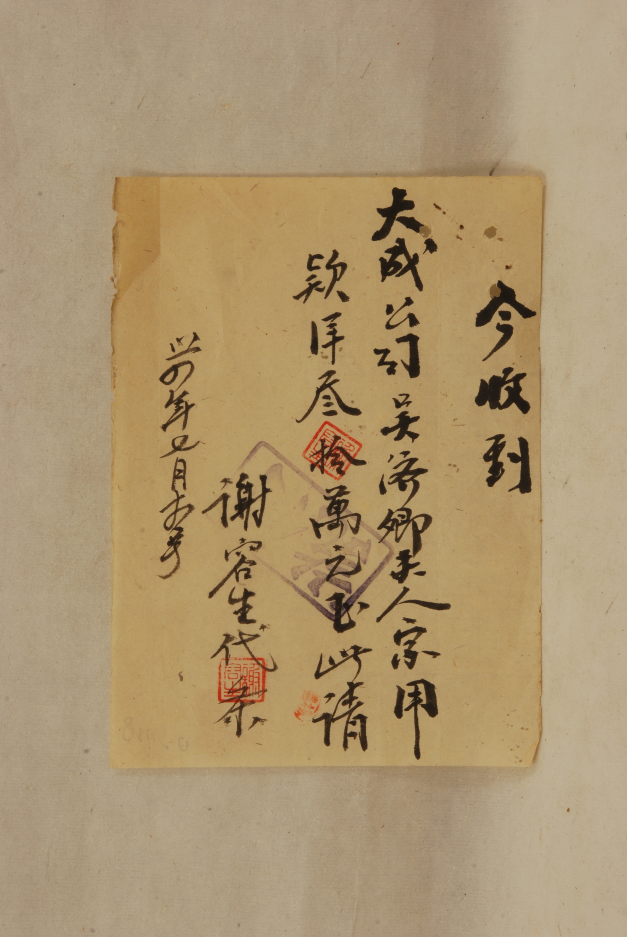 1945年谢容生代大成纺织染公司吴济卿夫人书写的收条