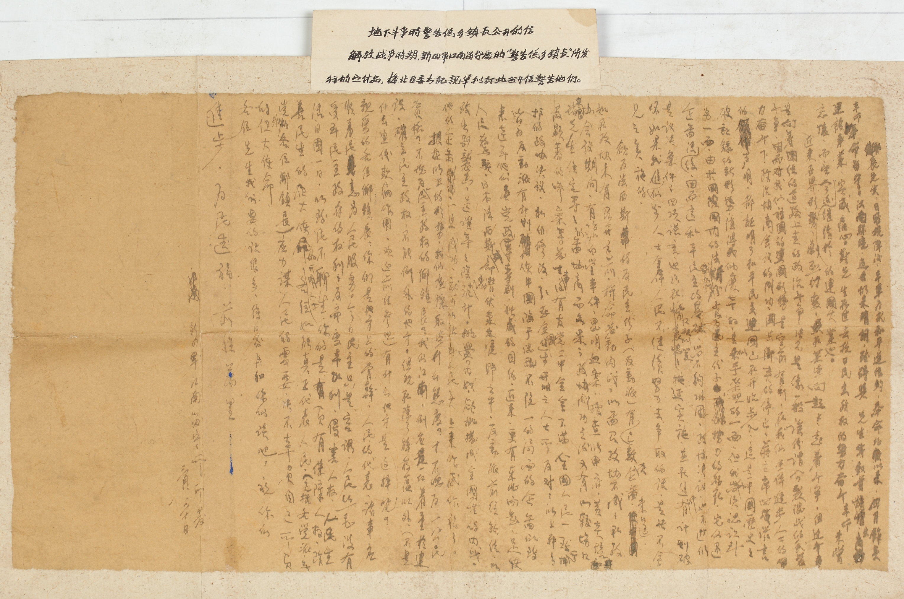 解放战争时期新四军江南留守所印发的警告伪乡镇长的公开信