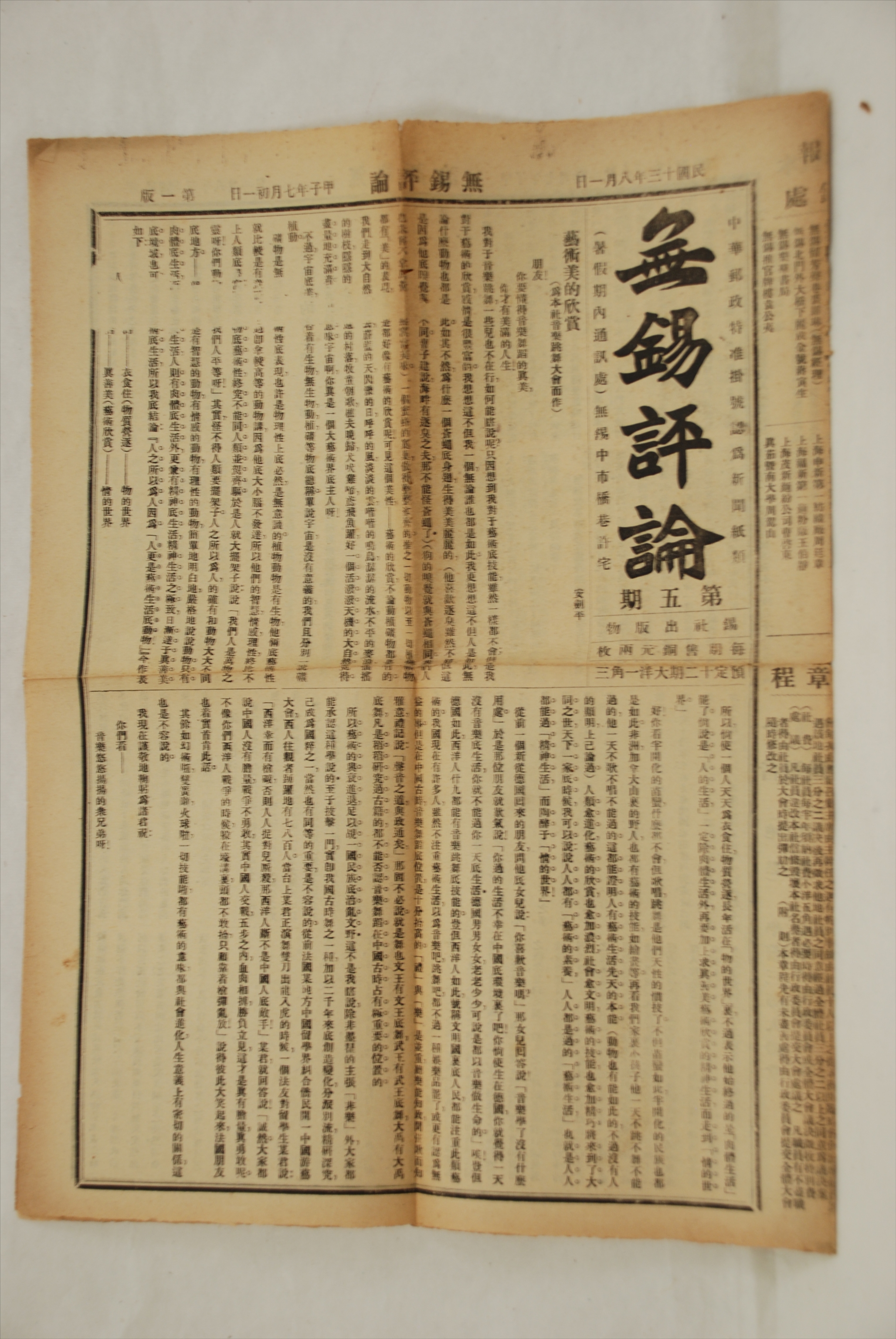 1924年8月1日《无锡评论》第五期