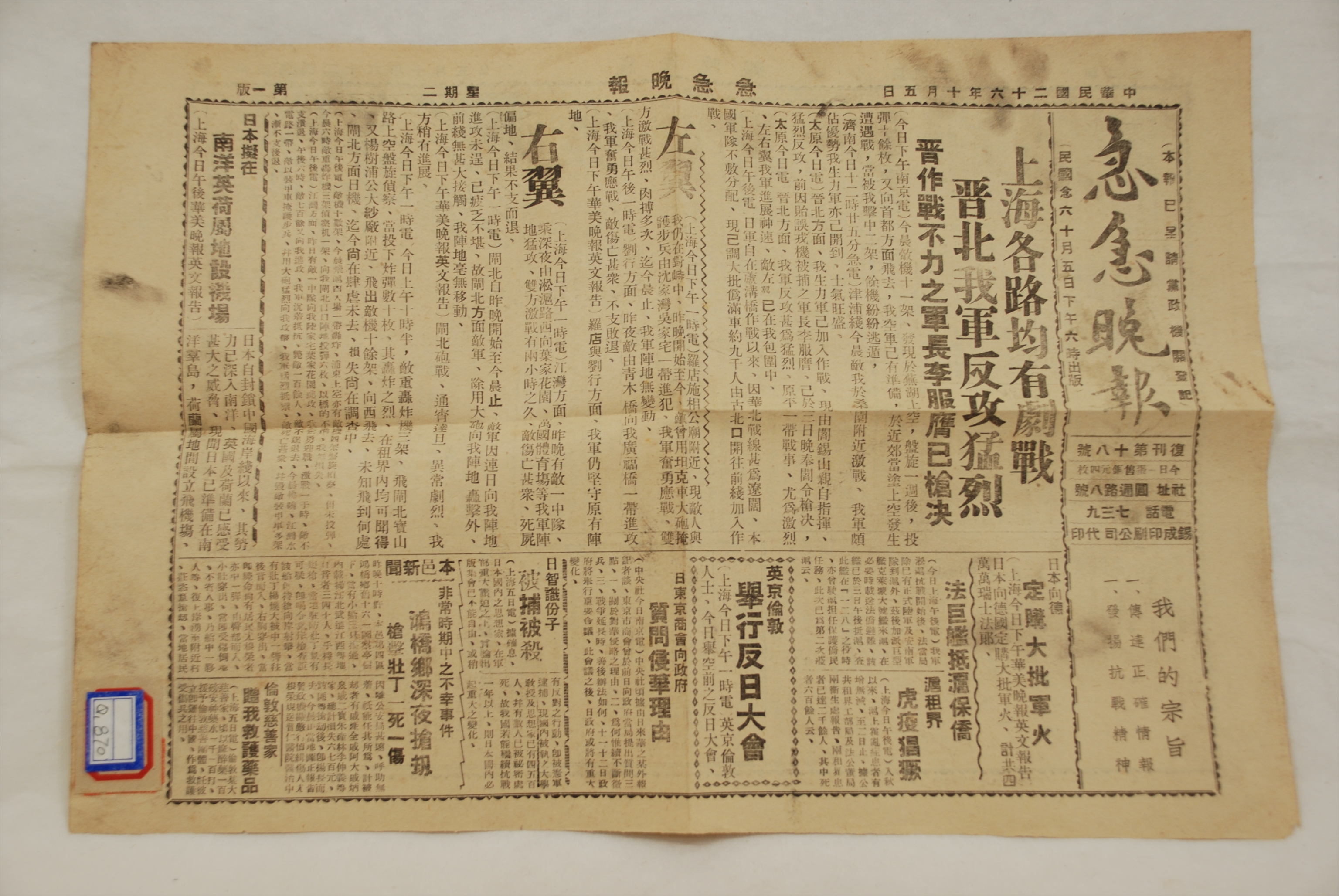 1937年10月5日《急急晚报》